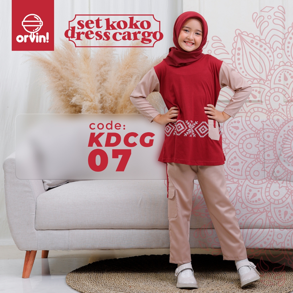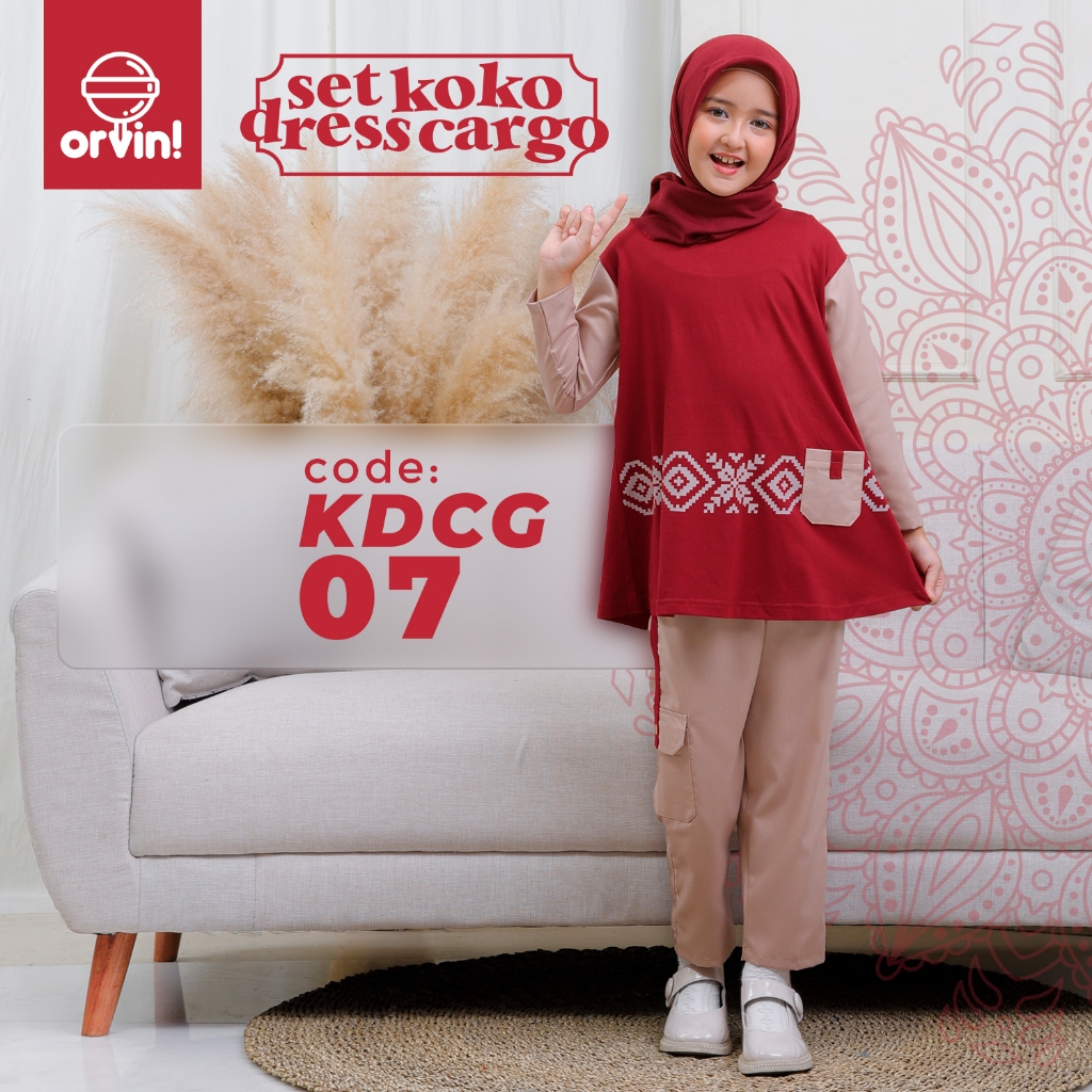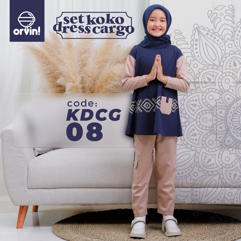 Orvin Kids Setelan Dress + Celana Cargo Casual Muslim Anak Perempuan usia 2 4 6 8 10 Tahun