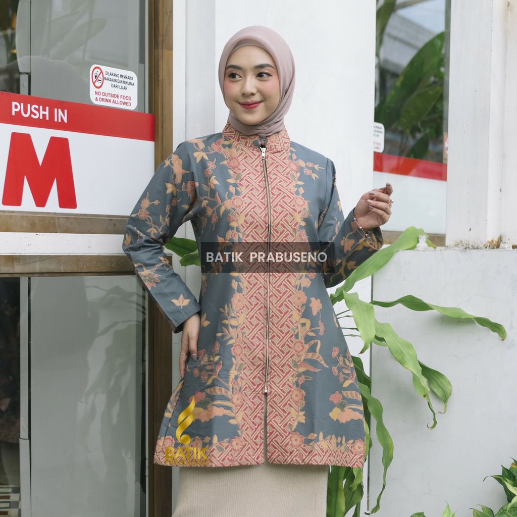 Tunik Atasan Batik Wanita Motif Aulia us Original Lengan Panjang Kerja Kantor Prabuseno Modern Premium Jumbo Big Size Kemeja Formal Kantoran Dewasa Elegan Etnik Eksklusif Kekinian Katun Printing Solo Busui COD Solo