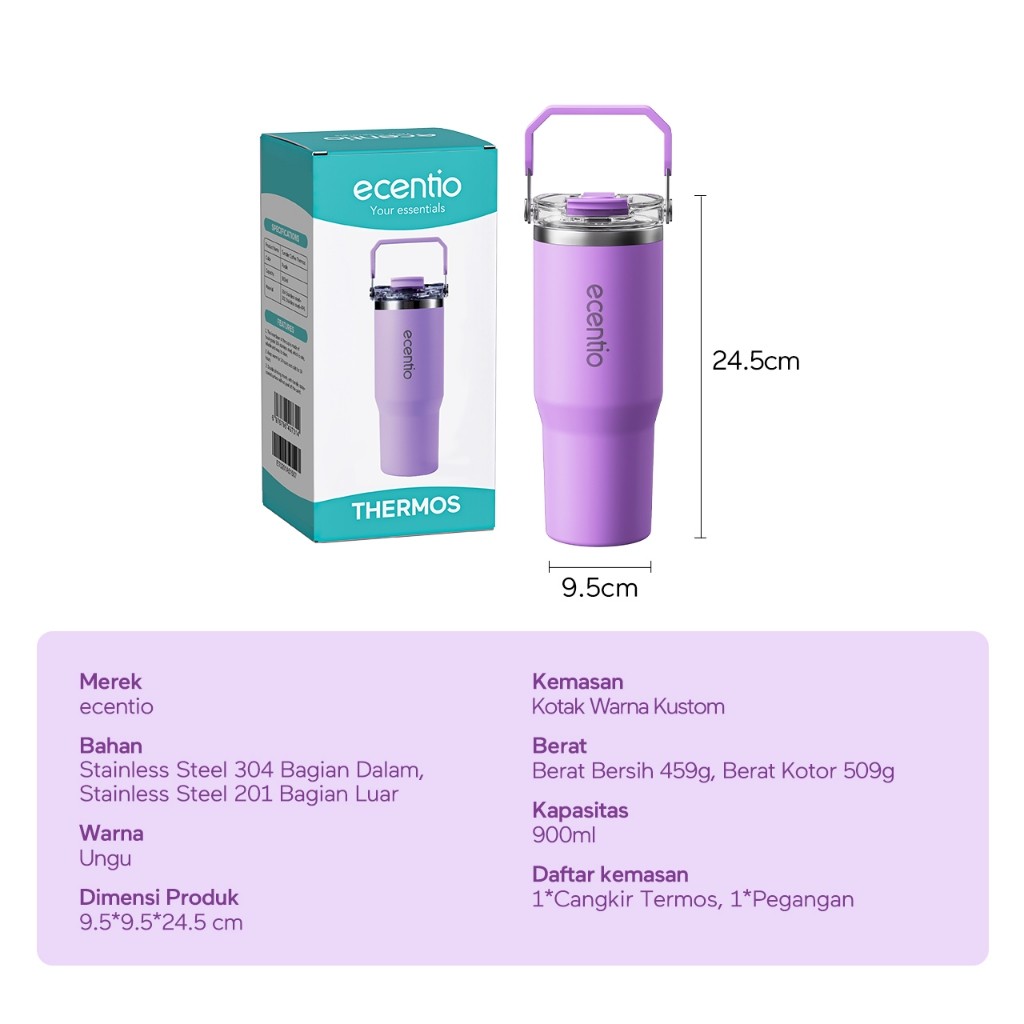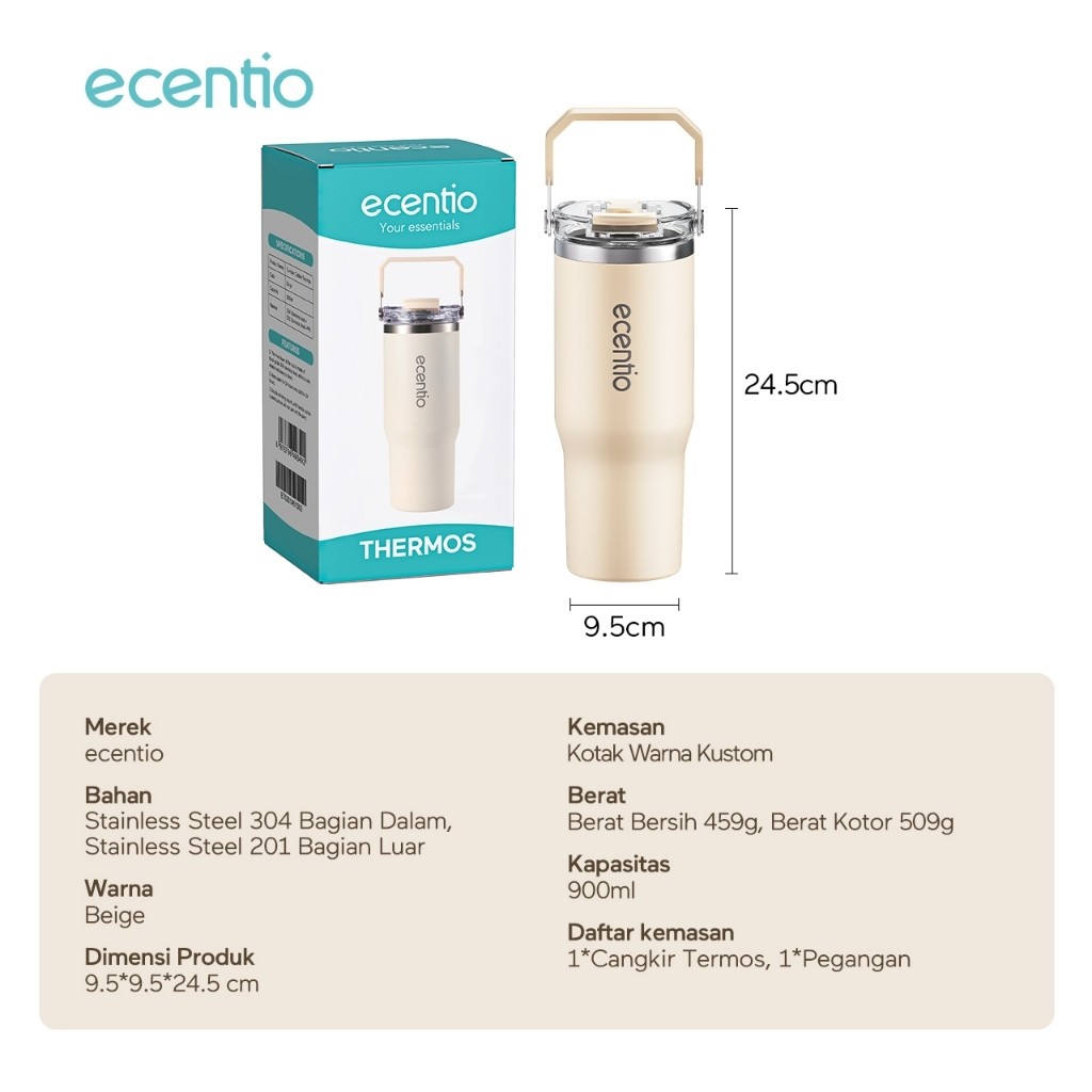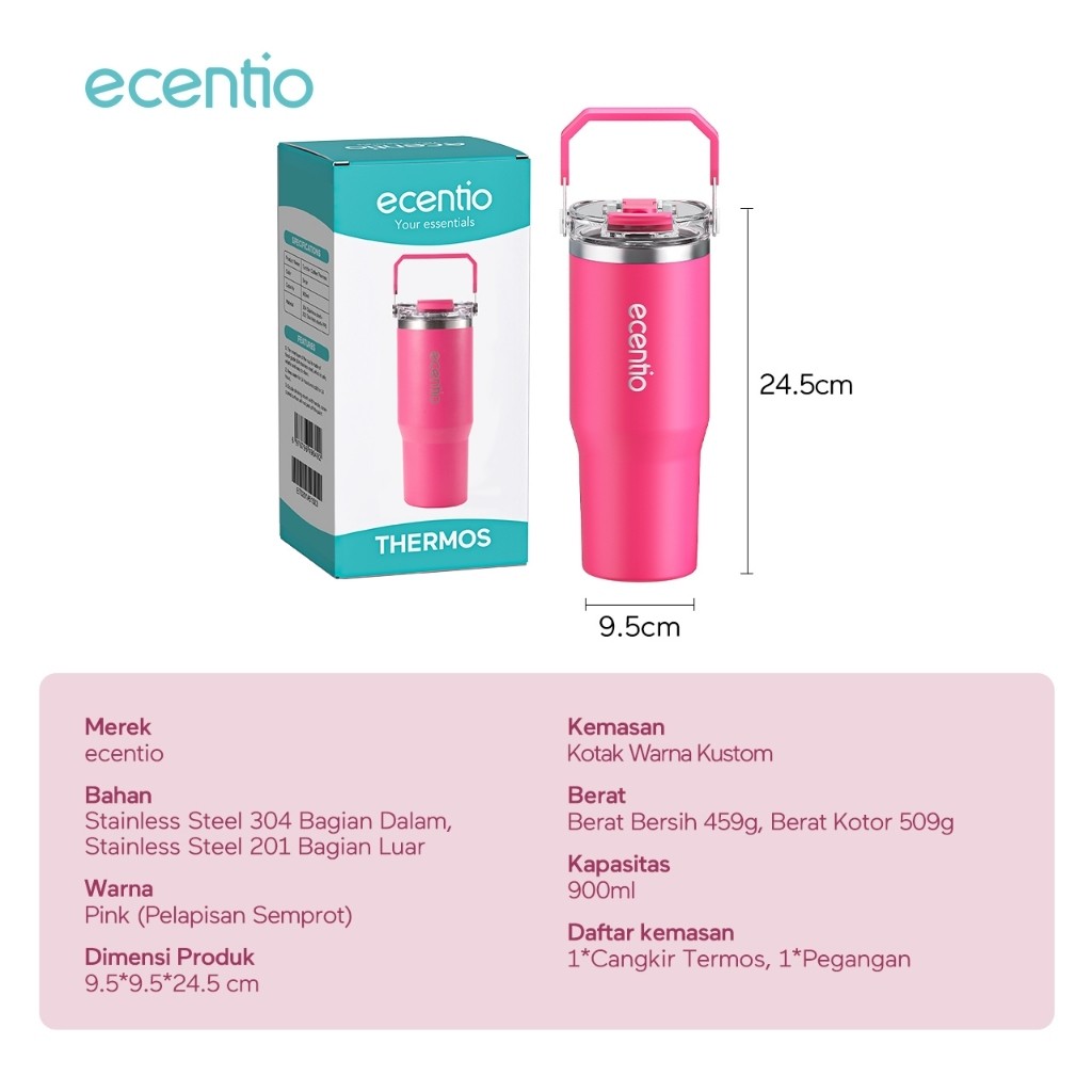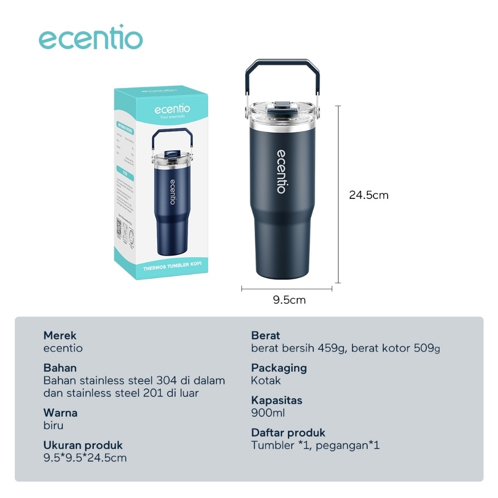 ecentio tumbler minum stainless tumbler tahan panas dingin 24 jam 900ml premium botol minum