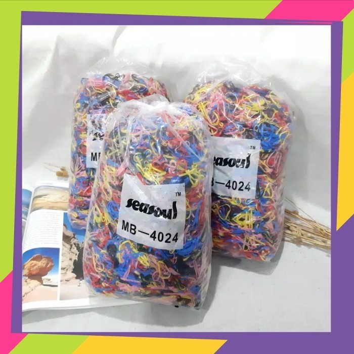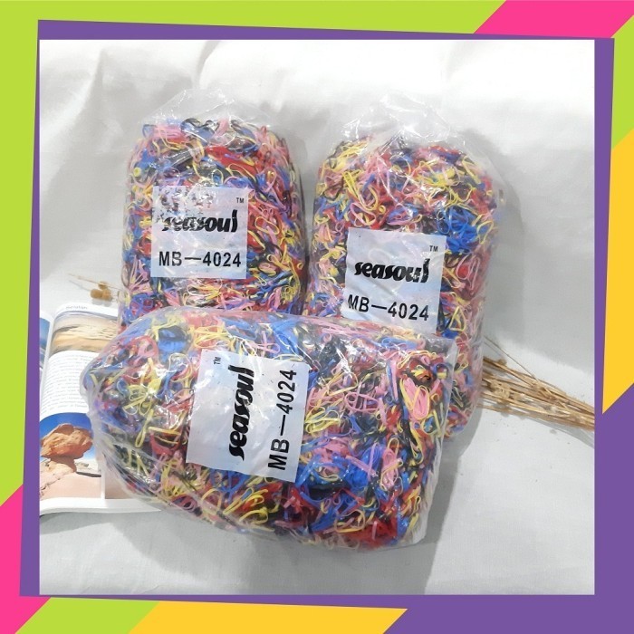 635 [Grosir] @1Kg Karet Jepang Ikat Rambut Ukuran M Warna Warni