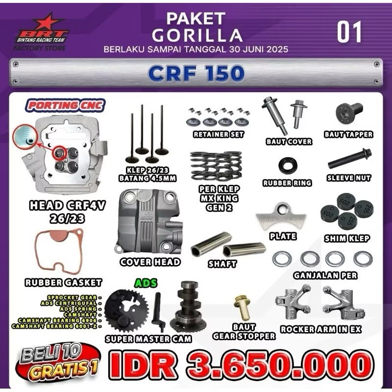 HEAD 4 VALVE CRF ORIGINAL BRT 26/23 dan 28/24