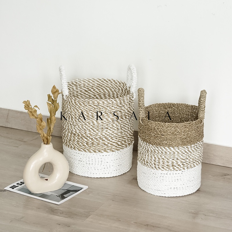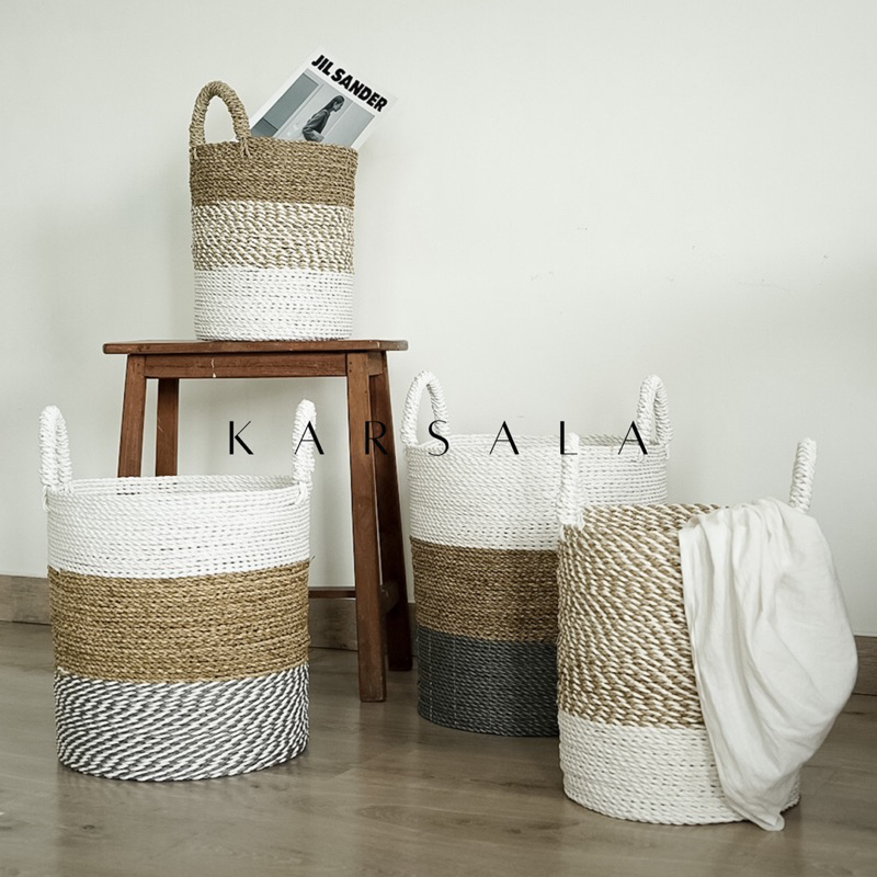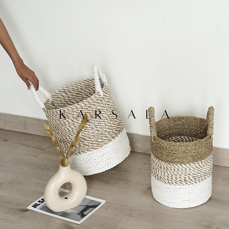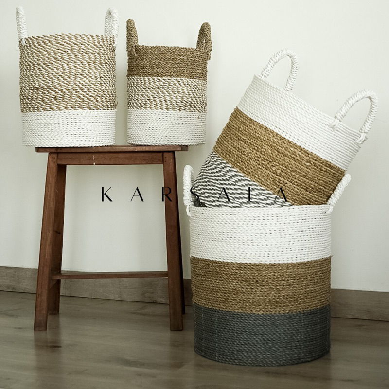 KARSALA Dako Basket 1 | Keranjang Laundry Anyaman Seagrass | Tempat Penyimpanan Storage Multifungsi | Wadah Baju Kotor Serbaguna | Cover Pot Galon Aesthetic | Wadah Hampers