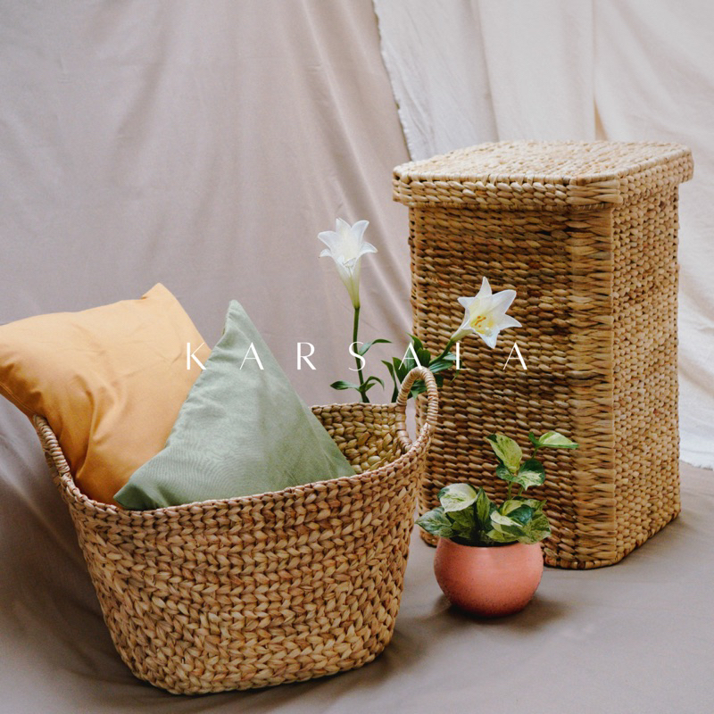 KARSALA Nava Basket| Keranjang Laundry Anyaman Eceng Gondok | Storage Tempat Penyimpanan Serbaguna Enceng