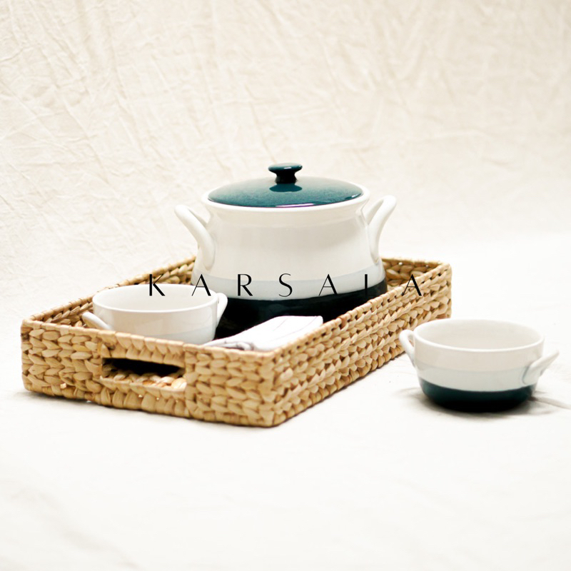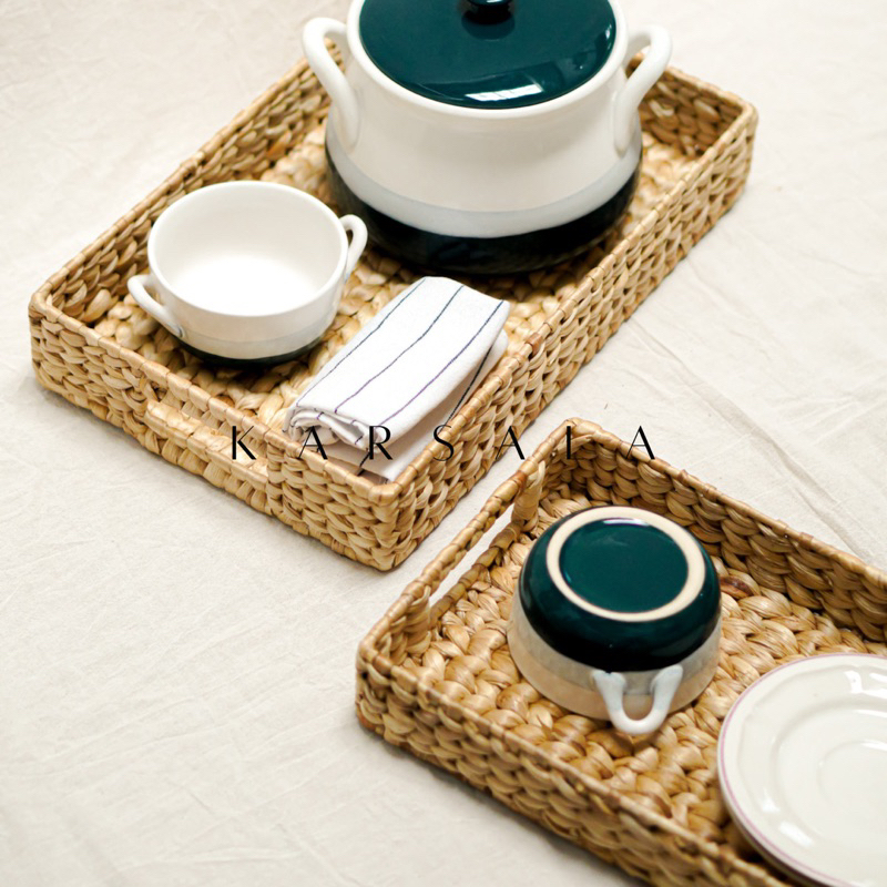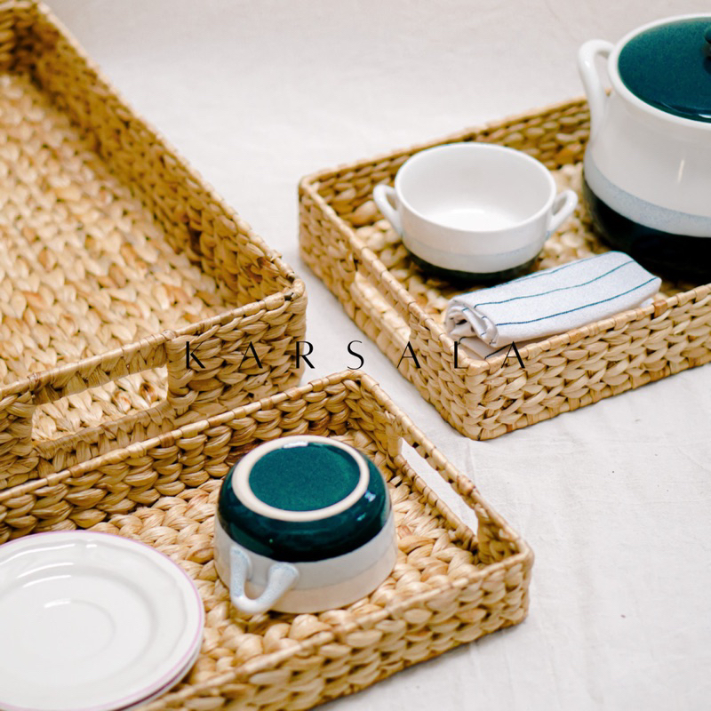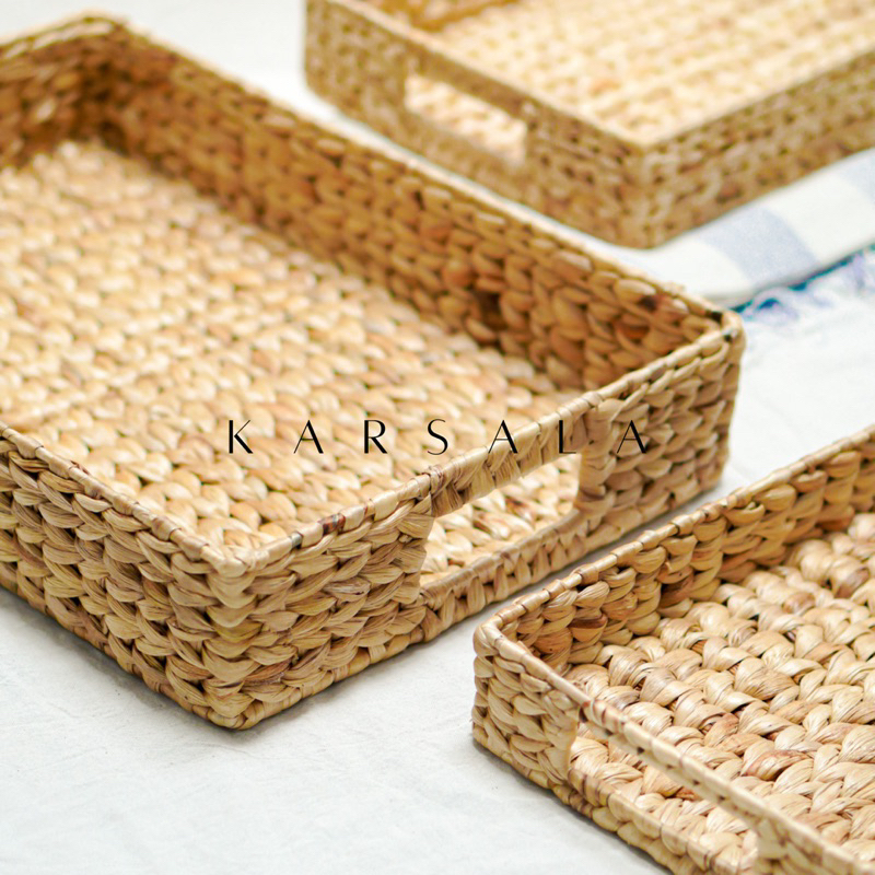 KARSALA Kala Tray Besi | Nampan Anyaman Eceng Gondok | Tempat Penyimpanan Enceng | Storage Multifungsi