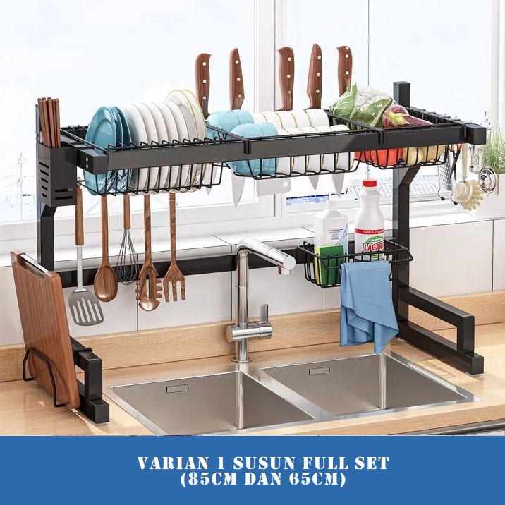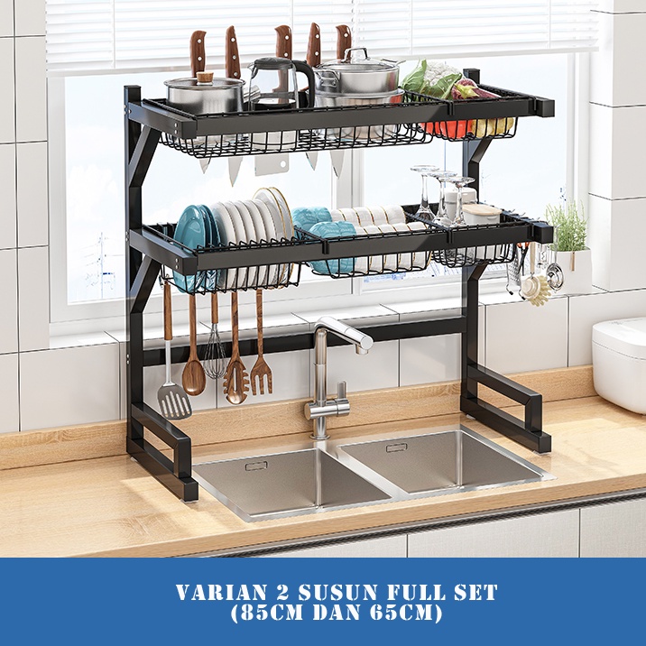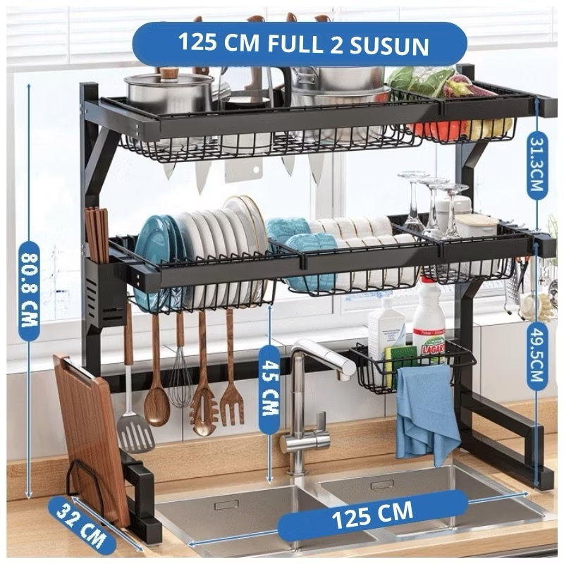 Ollahom Rak Dapur Hitam Rak Wastafel Rak Piring Dan Peralatan Dapur 65 Cm dan 125 cm