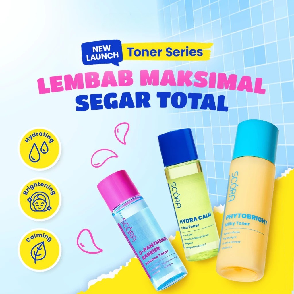 SCORA Toner Series 80ml || Hydra Calm Cica Toner || Phytobright Milky Toner || D–Panthenol Barrier Essence || Toner Pencerah Wajah