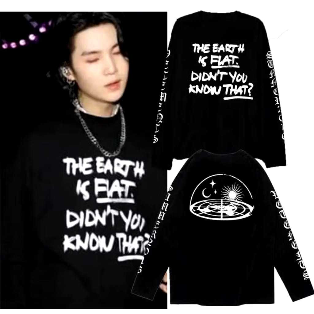 ATASAN WANITA & PRIA KAOS LENGAN PANJANG SUGA SG YET TO COME THE EARTH IS FLAT ATASAN WANITA & PRIA KAOS KATUN PREMIUM KAOS KATUN