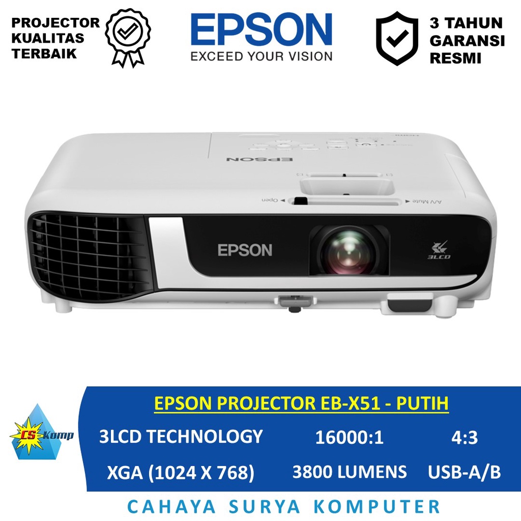 EPSON PROJECTOR EB-X51 | XGA | 3800 Lumens | 16000:1 | 4:3