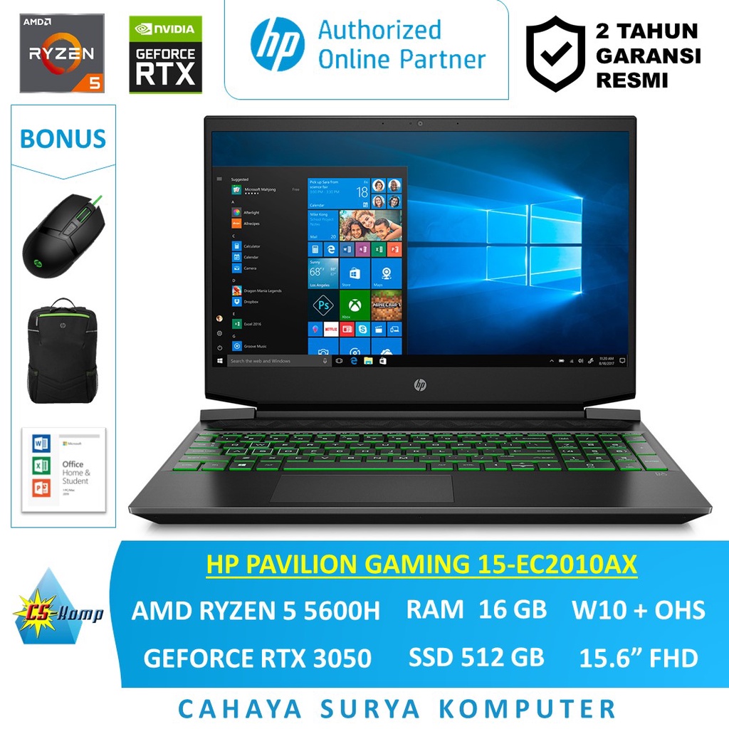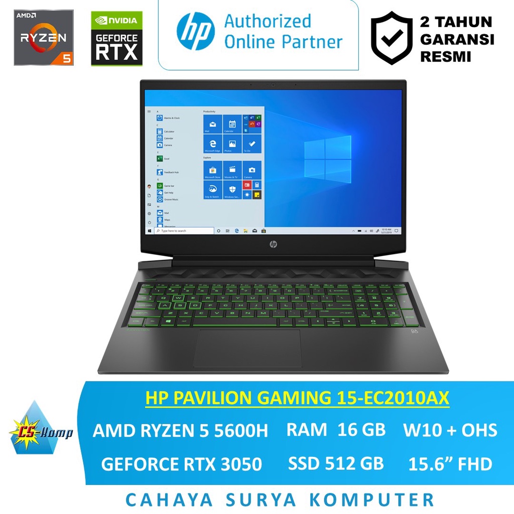HP PAVILION GAMING 15-EC2010AX |Ryzen 5 5600H |RAM 16GB |SSD 512GB | RTX 3050 4GB |W10 |OHS