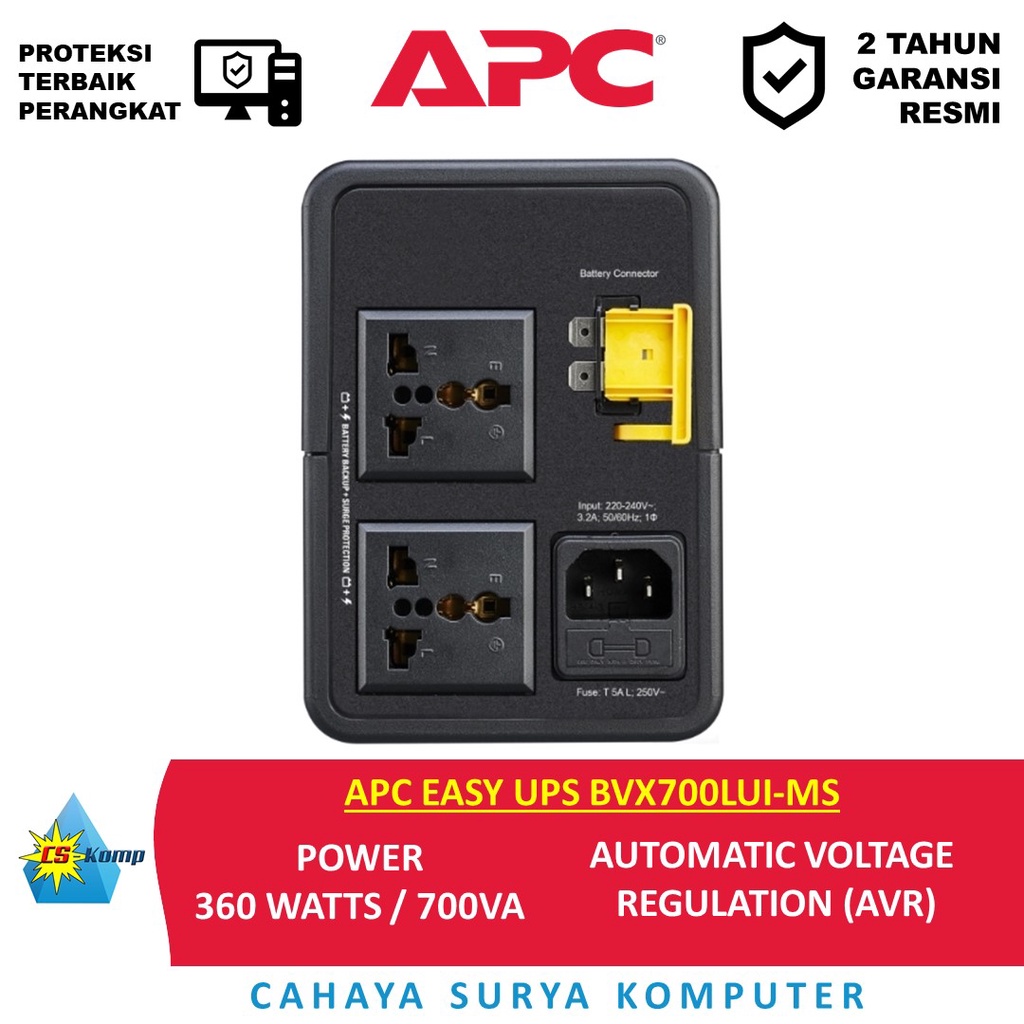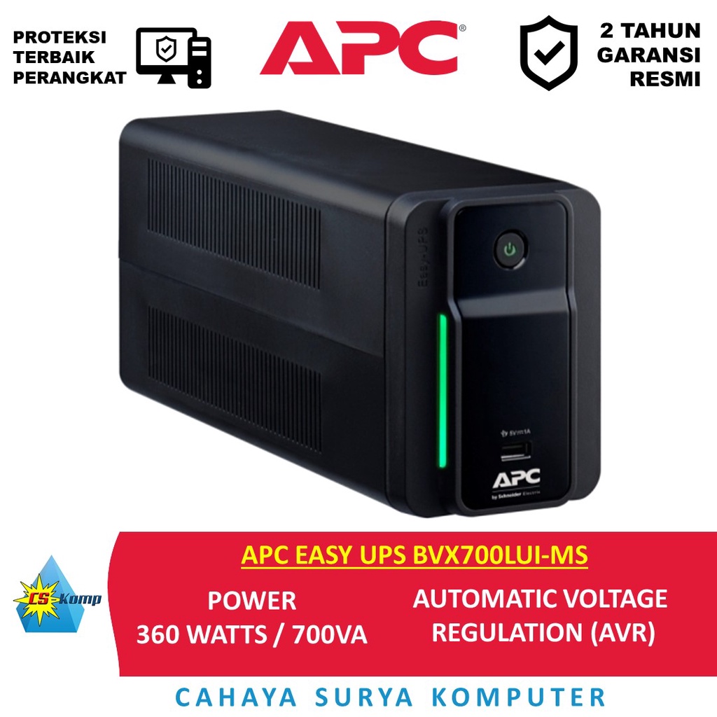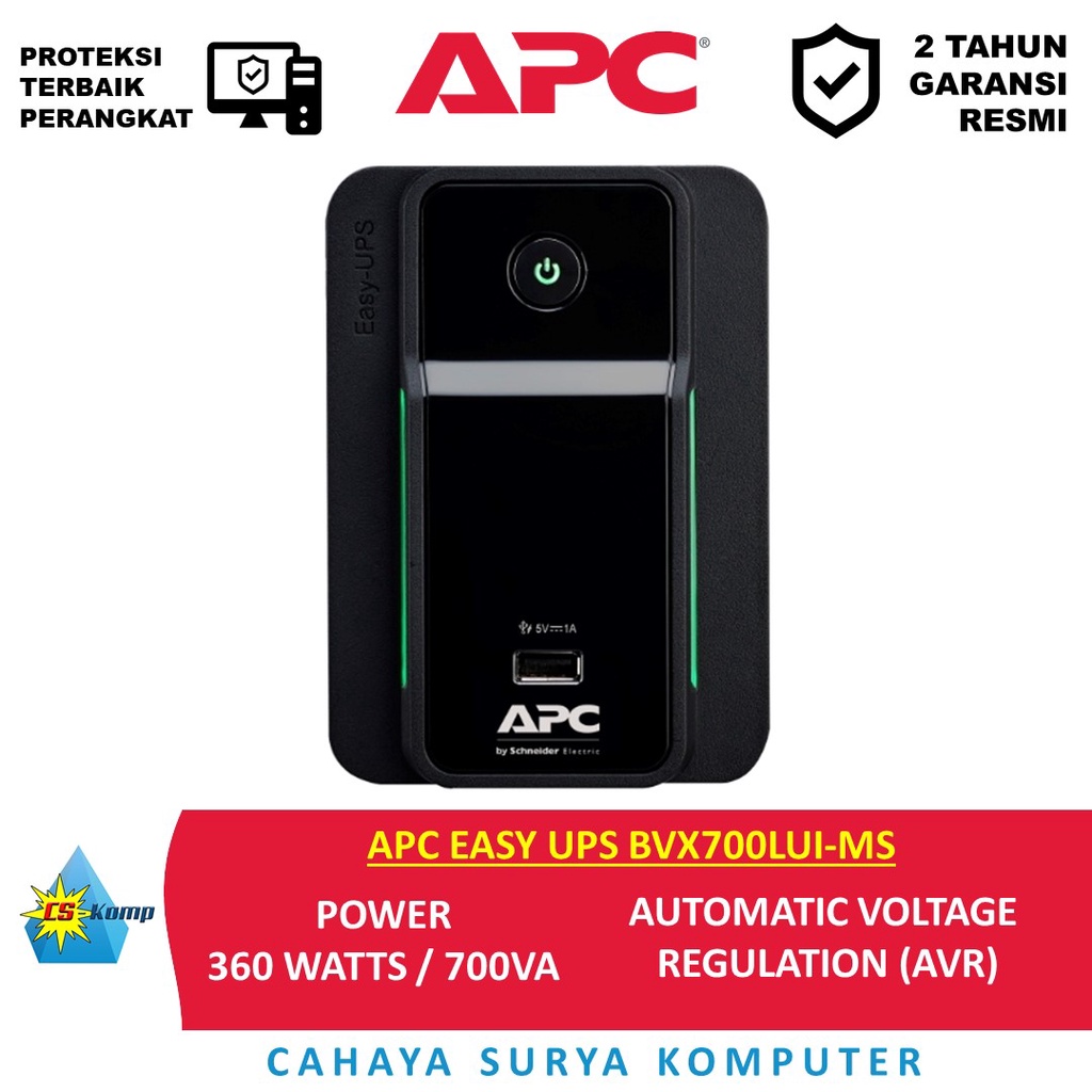 APC EASY UPS BVX700LUI-MS | 700VA | 360 Watts | AVR | USB harging | Universal Sockets