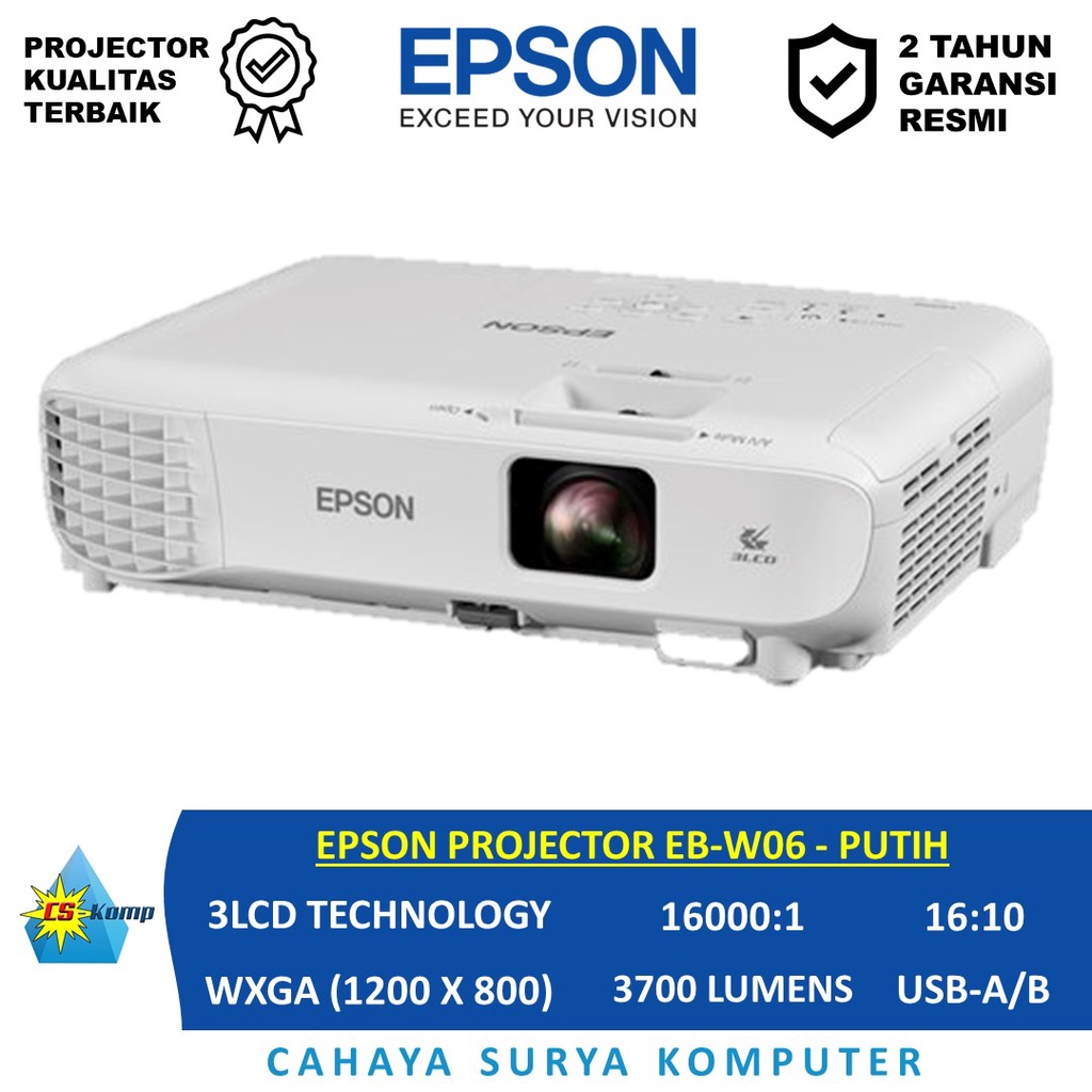 EPSON PROJECTOR EB-W06 | 3LCD Technology | WXGA | 3700 Lumens | 16000:1 | 16:10