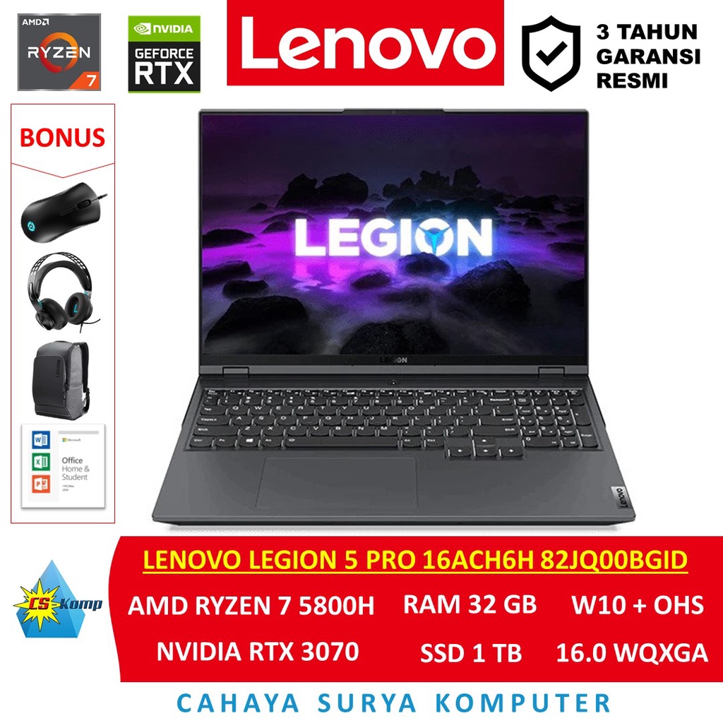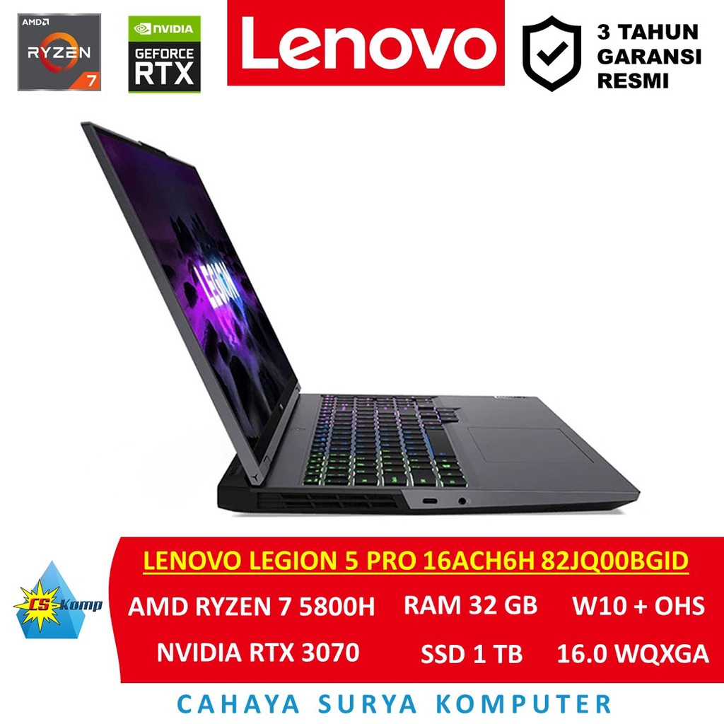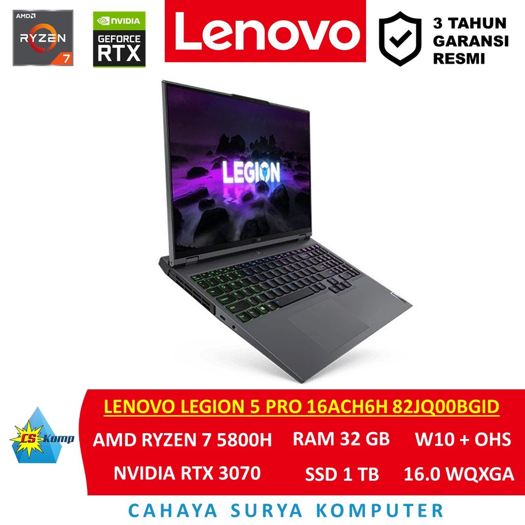Lenovo Legion 5 Pro 16ACH6H 82JQ00BGID | AMD Ryzen 7 5800H | RTX 3070 | RAM 32GB | SSD 1TB | W10 | OHS | 16.0 WQXGA IPS