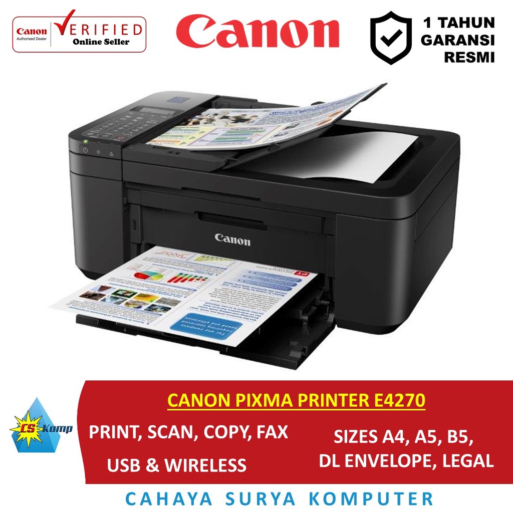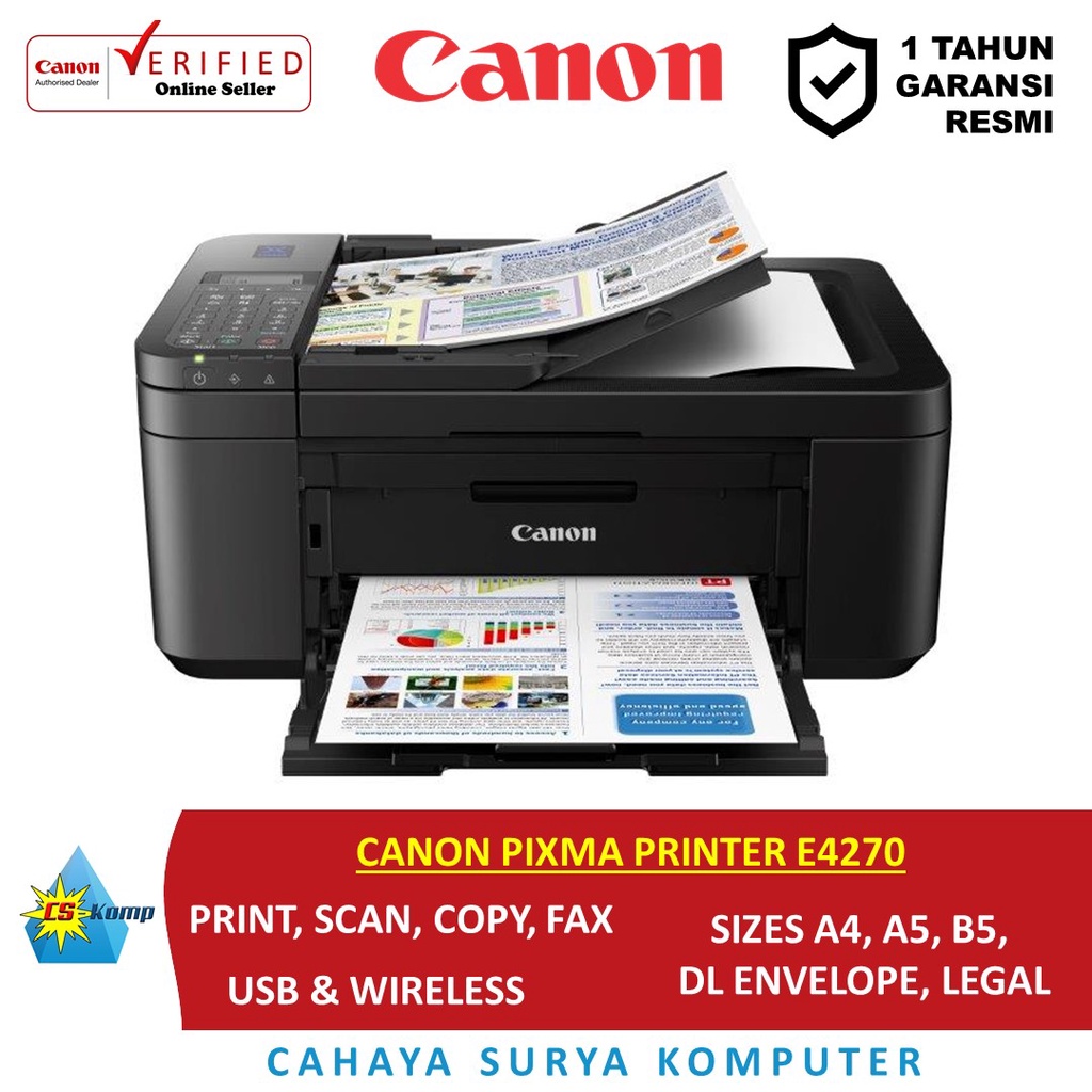CANON PIXMA PRINTER E4270 | Print | Scan | Copy | Fax | Wireless | USB