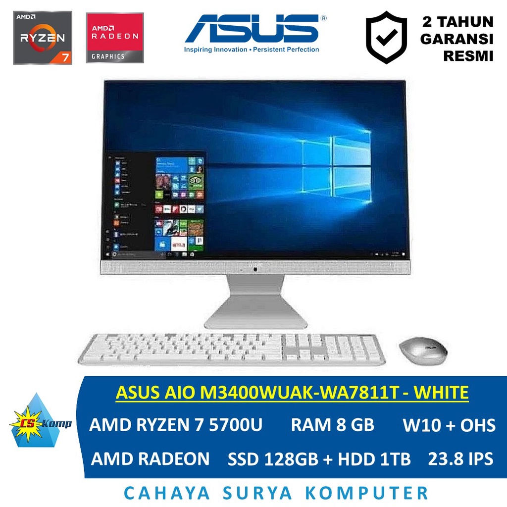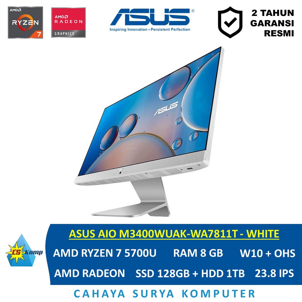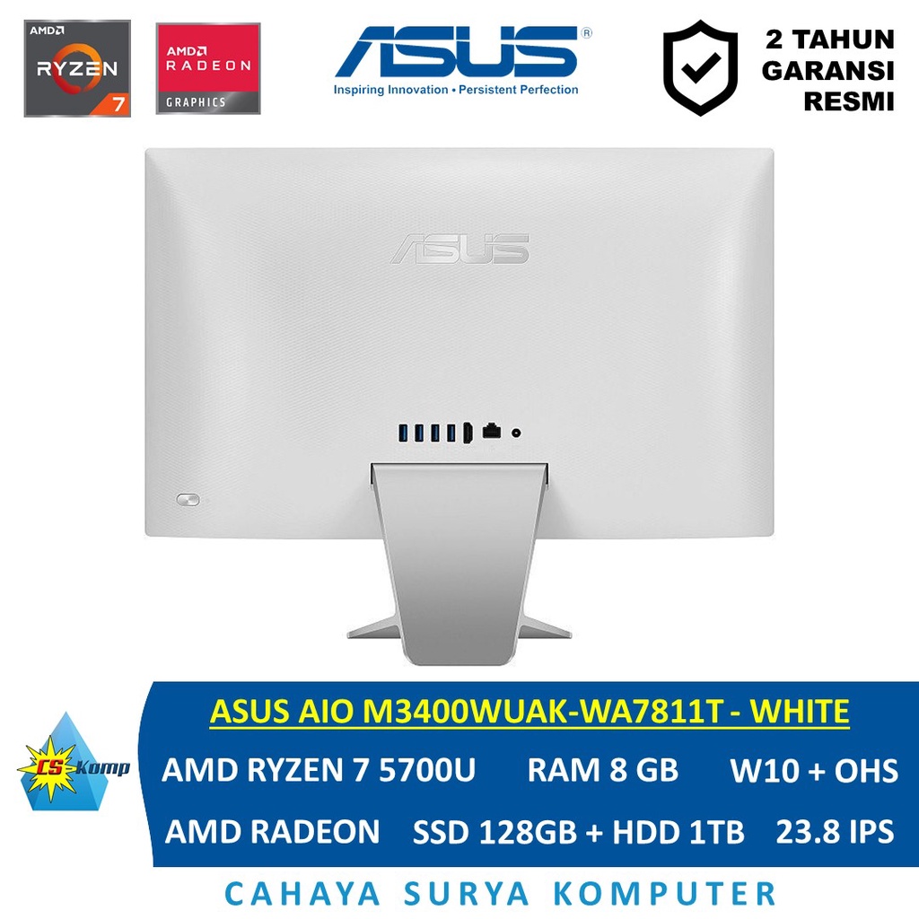 ASUS AIO M3400WUAK-WA7811T | AMD Ryzen 7 5700U | RAM 8GB | HDD 1TB | SSD 128 | W10 | OHS | 23.8 FHD IPS