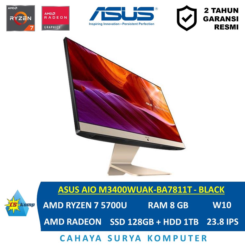 ASUS AIO M3400WUAK-BA7811T | AMD Ryzen 7 5700U | RAM 8GB | HDD 1TB | SSD 128GB | W10 | 23.8 FHD IPS Touchscreen