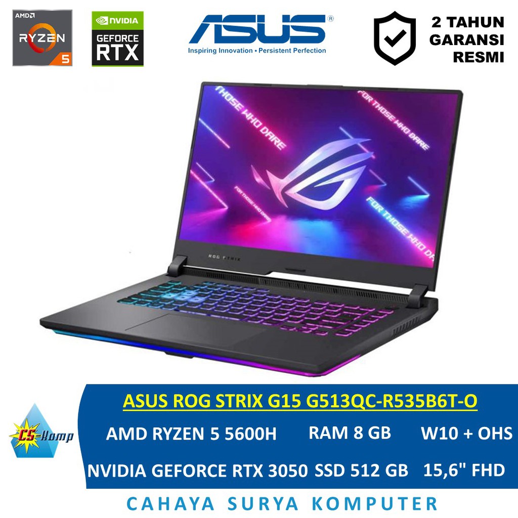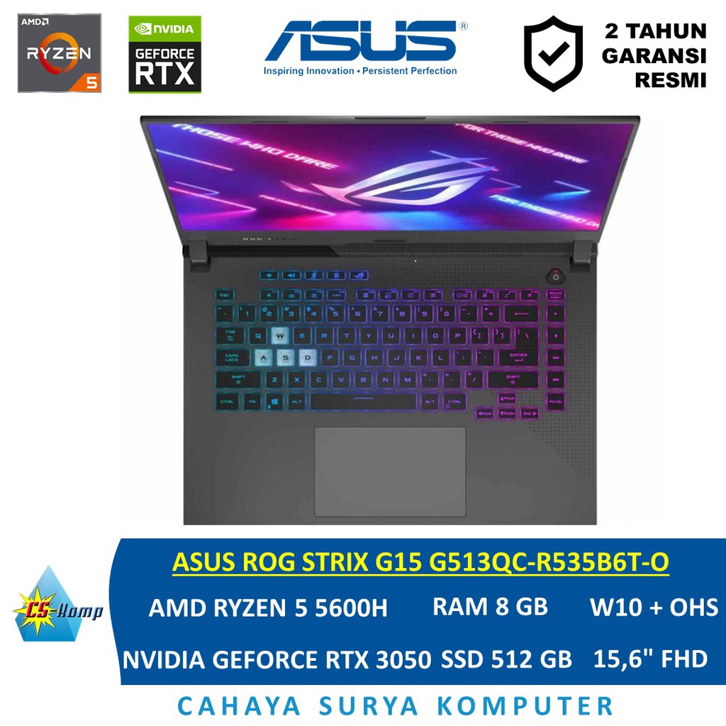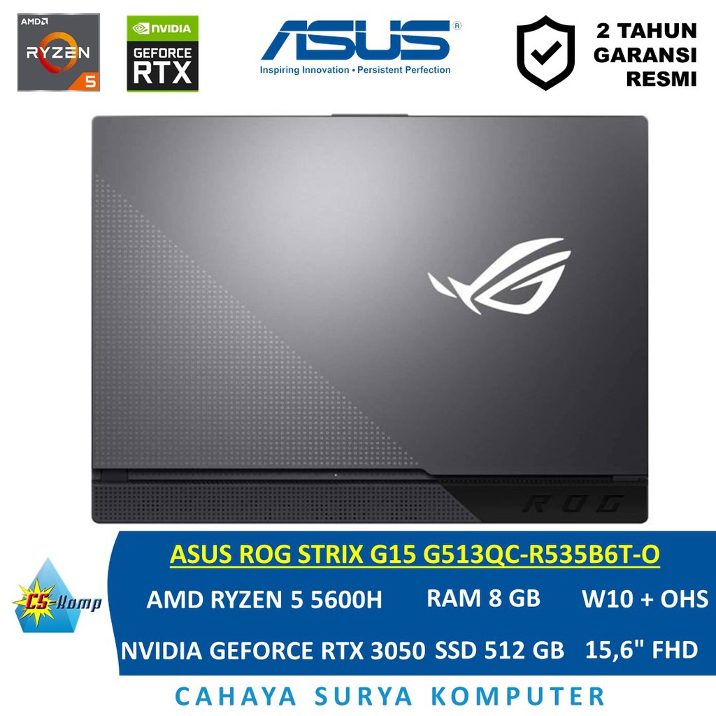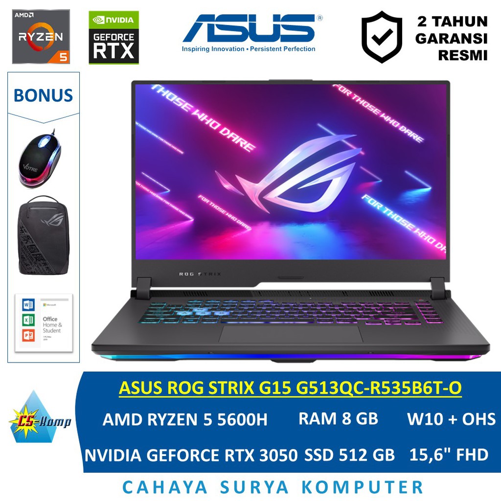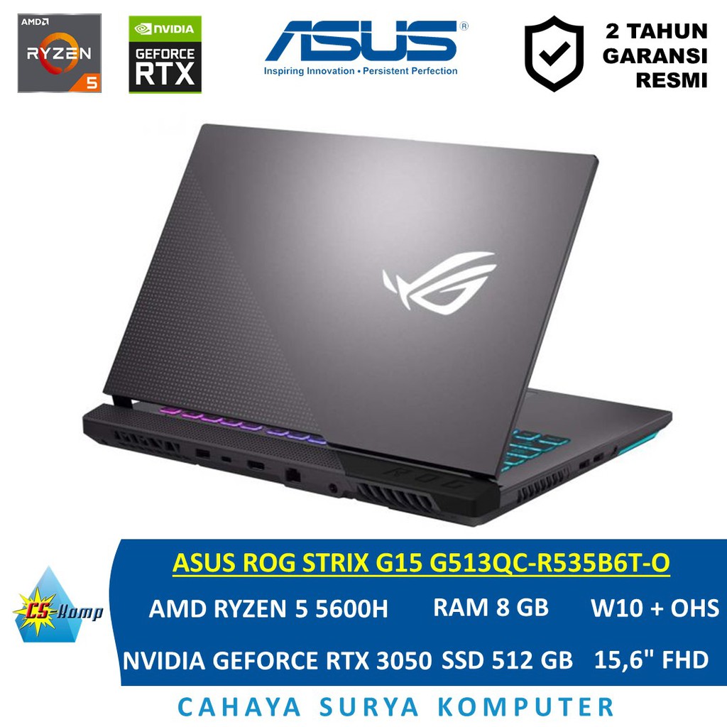 ASUS ROG STRIX G15 G513QC-R535B6T-O |Ryzen 5 5600H |RAM 8GB |SSD 512GB |GeForce RTX 3050 |W10 |OHS