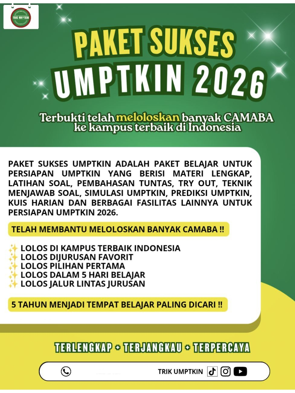PREMIUM - PAKET SUKSES UMPTKIN 2026 (TERBUKTI MELOLOSKAN, TERPERCAYA 5 TAHUN)- Materi UMPTKIN 2026, Latihan Soal Umptkin 2026, Prediksi Soal Umptkin 2026, Try Out Umptkin 2026, Simulasi Umptkin 2026