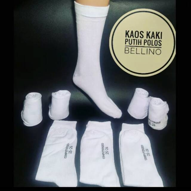 Bellino - Kaos Kaki Putih Polos Panjang Sebetis / Kaos Kaki Sekolah Putih Panjang / Kaos Kaki SMA