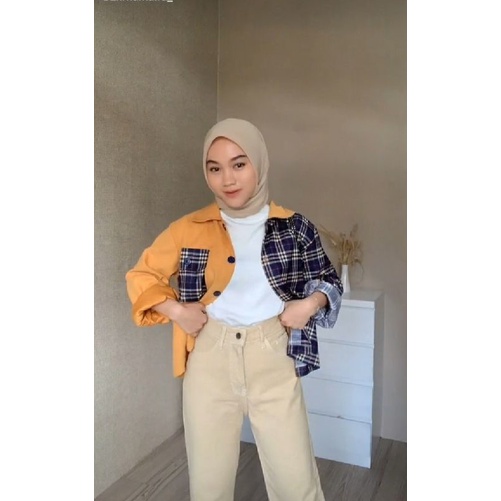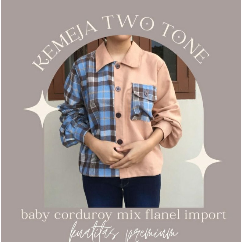 Kemeja Two Tone Crop Corduroy Ballon by PINKHIJAB_BOUTIQUE KEMEJA WANITA