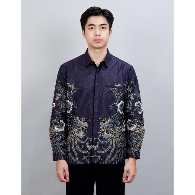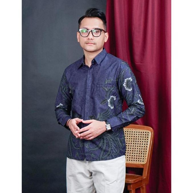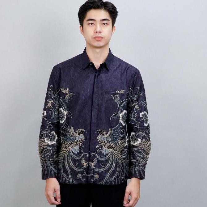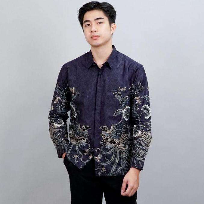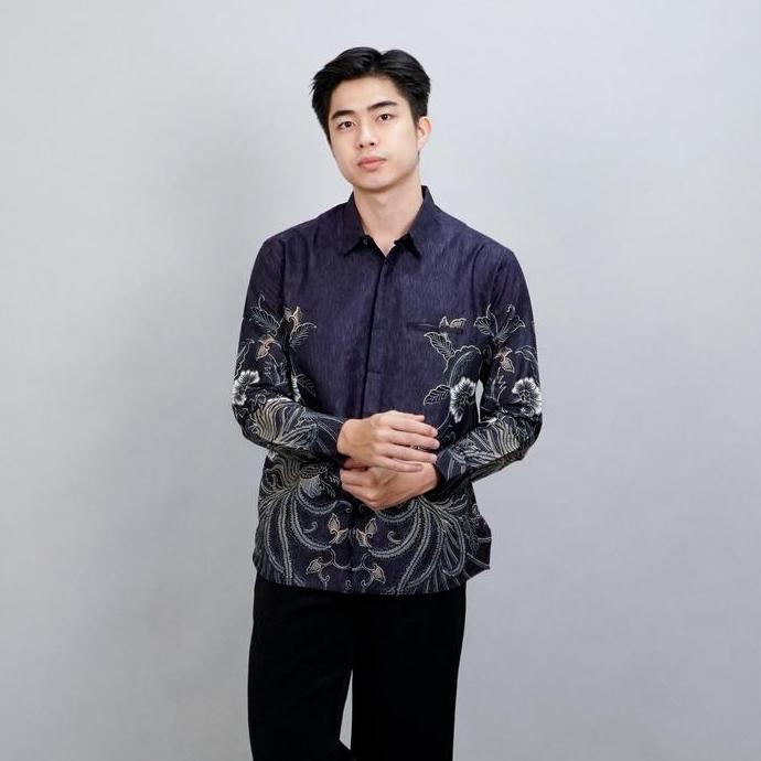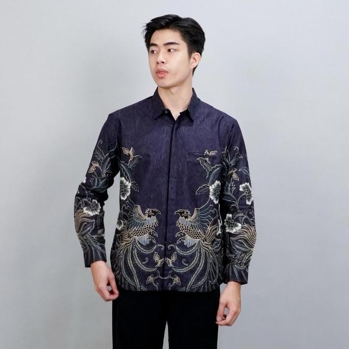 Swipe Up Kemeja Batik Pria Modern Slimfit Katun Lengan Panjang Motif Gokura Ungu