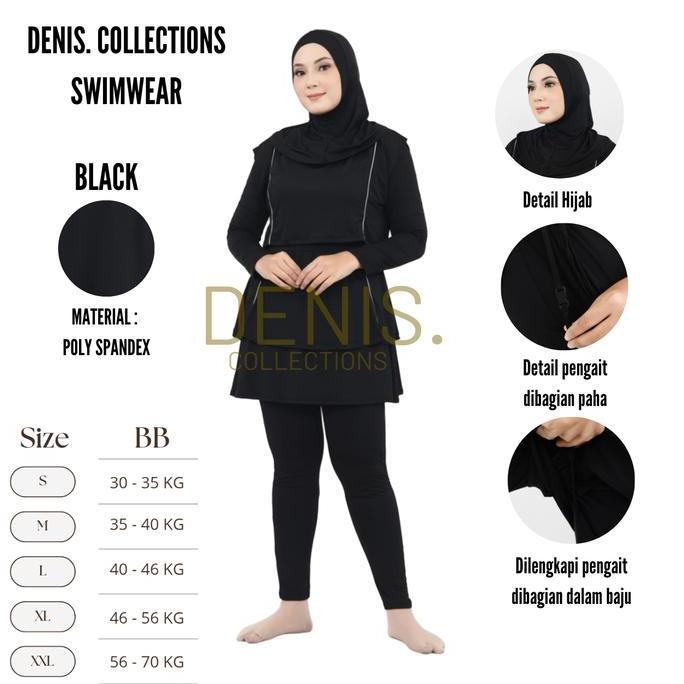 DENIS COLLECTIONS Swimwear R.L Baju Renang Muslimah Syari Dewasa Wanita Hijab Full Body Diving Style Bahan Poly Spandex Nyaman & Modis Size M-6L - Panjang Remaja