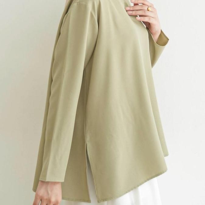 MISTYVORI | Tiva Baju Panjang Polos Atasan Wanita Anti Kusut Muslim Basic Kancing Kerah Outer Simple Casual