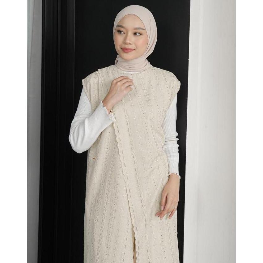 MISTYVORI | Nirmala Vest Bordir Muslim Wanita Motif Panjang Rompi Atasan tille kardigan Oversize Outer