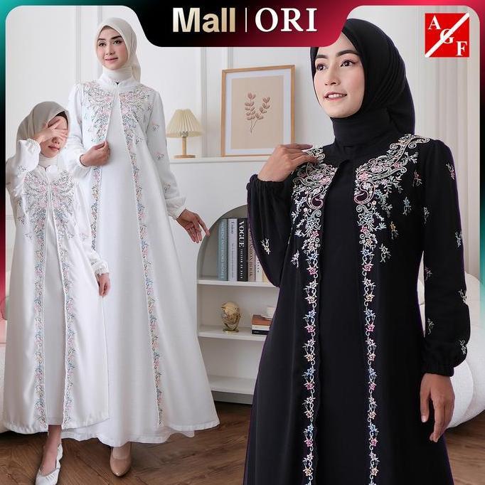 Agnes Hijab - Aiza Dress Gamis Lebaran 2026 Terbaru Abaya Hitam Bordir Bunga Baju Muslim Wanita Mewah Elegan Pengajian Manasik Haji Umroh 850