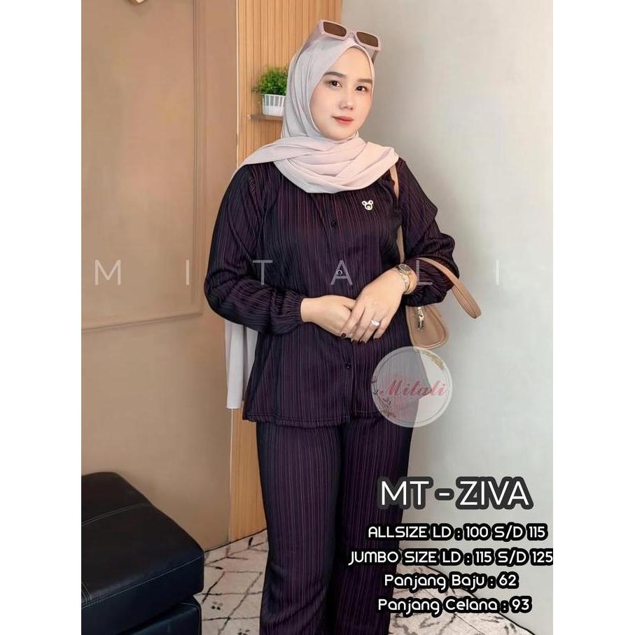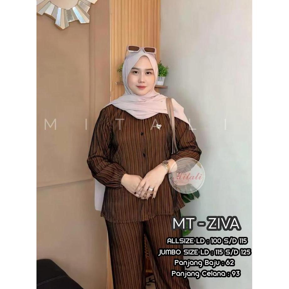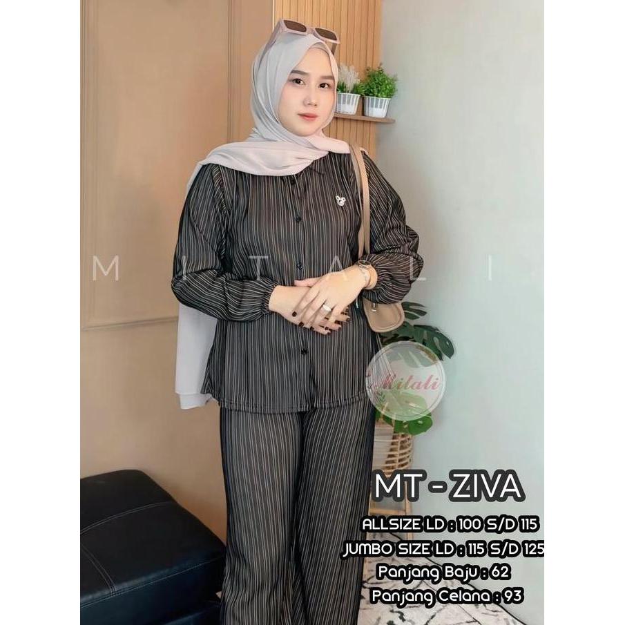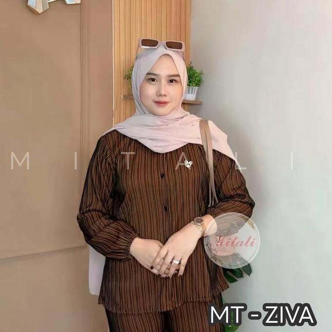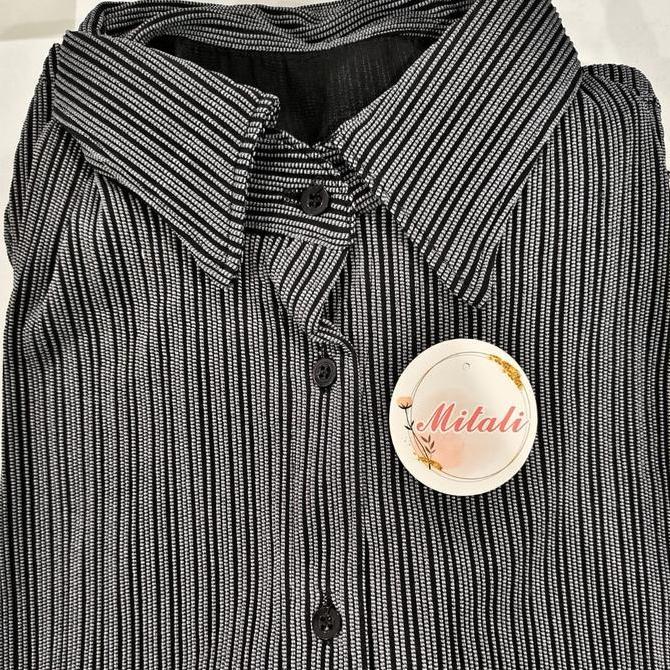 MT - Oneset Salur Model kemeja Bahan Knit Salur Premium