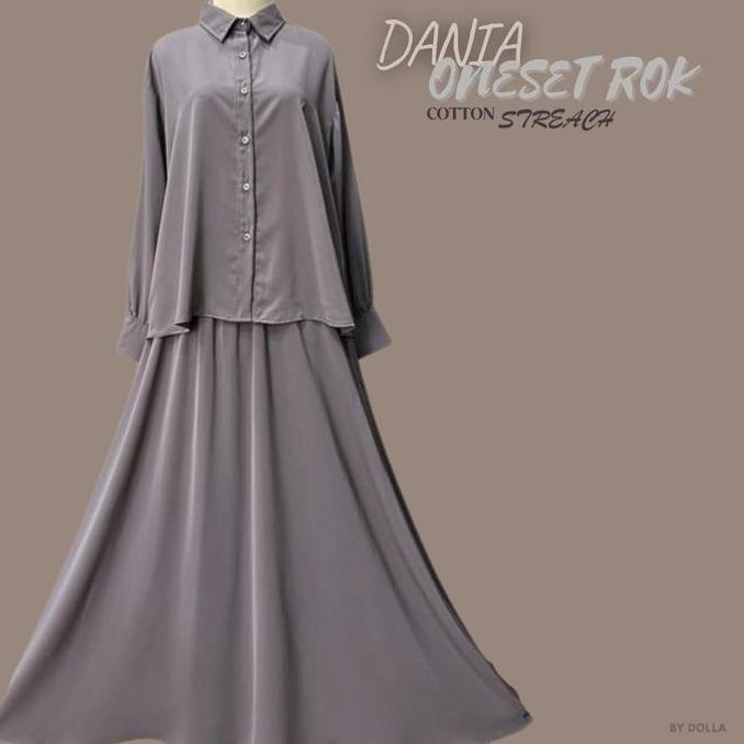 By Dolla - Dania Oneset Rok - Baju Oneset Rok Wanita Muslim - Katun Streach Lembut Adem Dingin Anti Kusut Nyaman - OOTD Casual Hijab Wanita Muslim