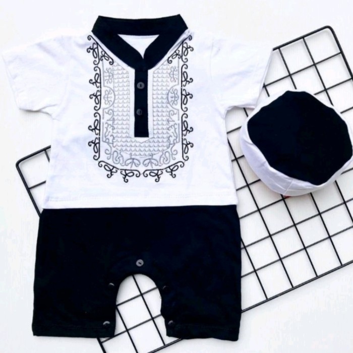 ✨BEST✨ -Baju Koko Bayi 0 6 Bulan Newborn Laki Laki Model Jumper Modern Terbaru - putih hitam
