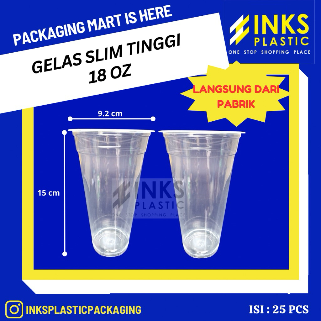GELAS 18 OZ SLIM TINGGI GELAS PLASTIK DATAR CUP (25 PCS)