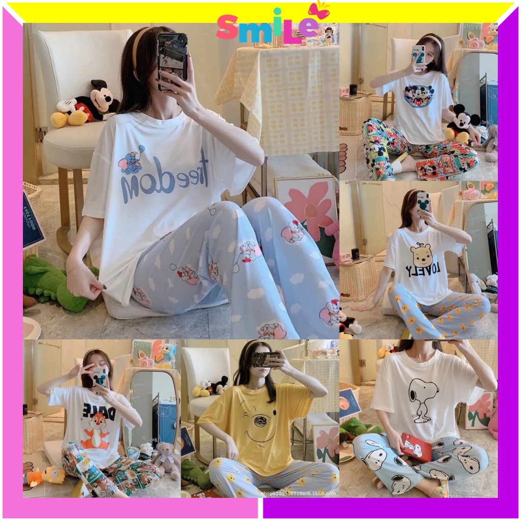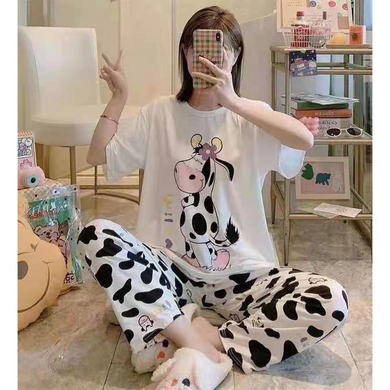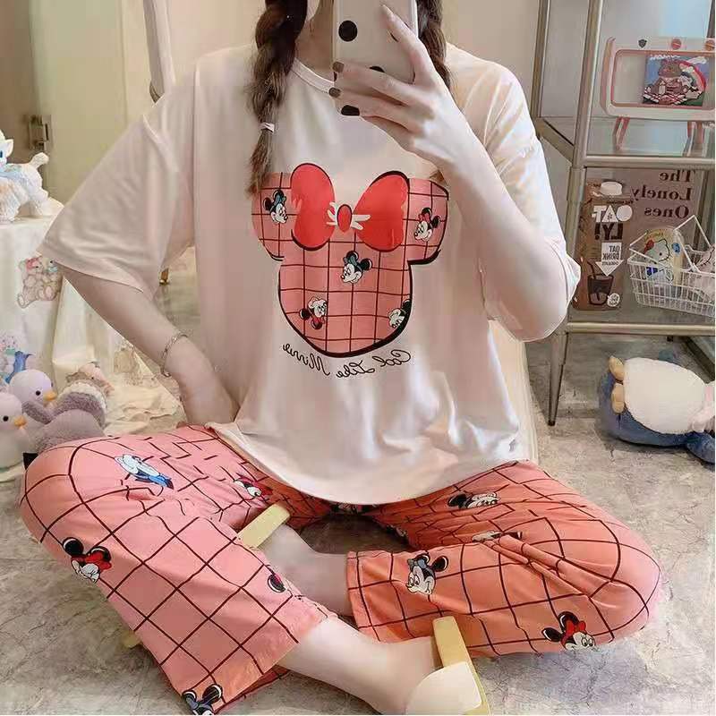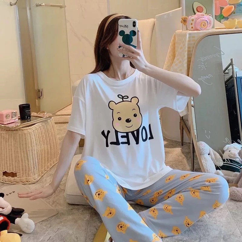 Smile Pakaian Wanita Baju Tidur Wanita Import Piyama Lengan Pendek Motif Kartun Fit to L 4015
