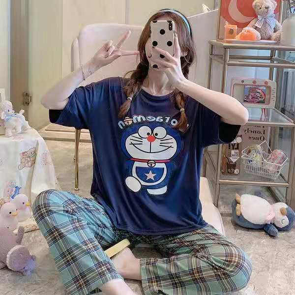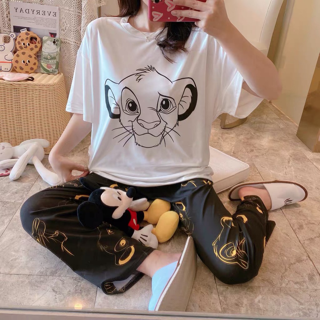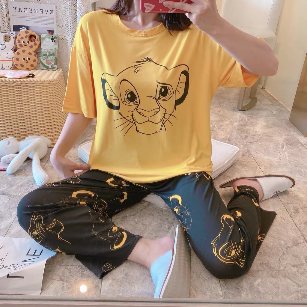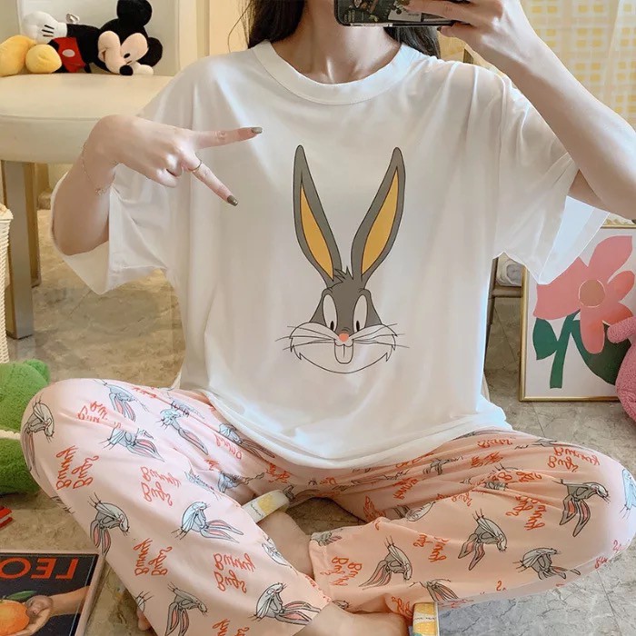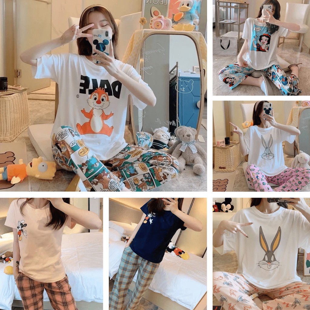 Smile Pakaian Wanita Baju Tidur Wanita Import Piyama Lengan Pendek Motif Kartun Fit to L 4015