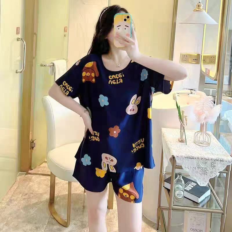 Smile Pakaian Wanita Baju Tidur Wanita Piyama Lengan Pendek Import Motif Kartun Fit to L 4019