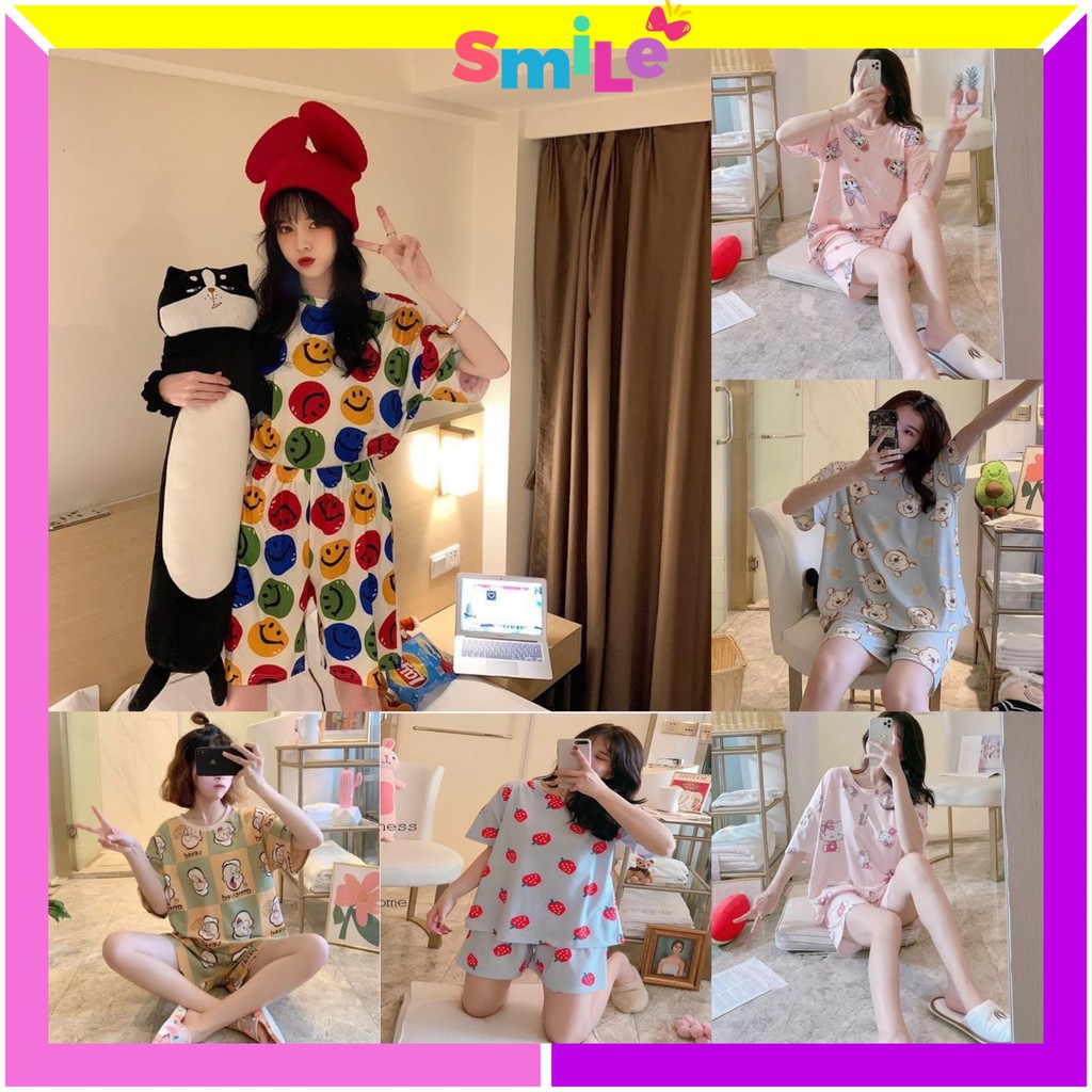 Smile Pakaian Wanita Baju Tidur Wanita Piyama Lengan Pendek Import Motif Kartun Fit to L 4019
