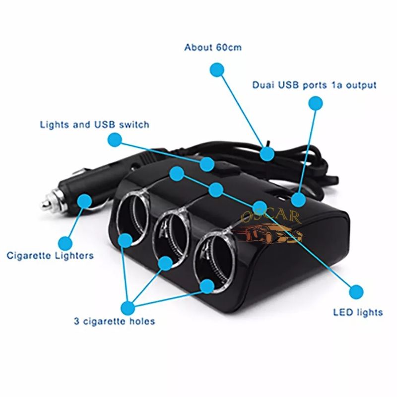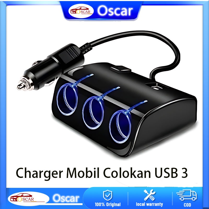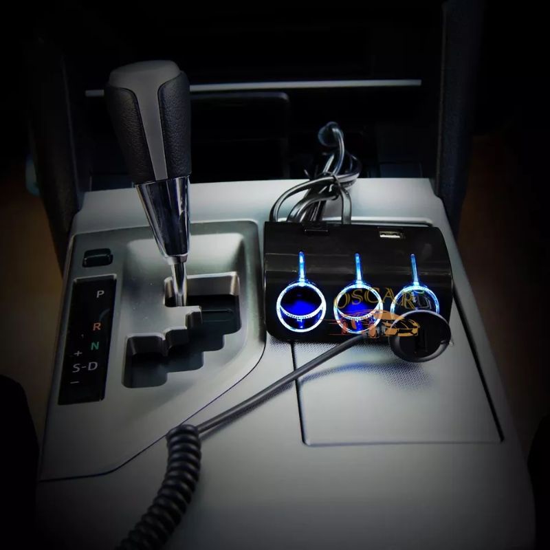 Charger Mobil Colokan USB 3 Lubang Soket Lighter / Triple Socket Cigarette Lighter USB 3 port BESAR