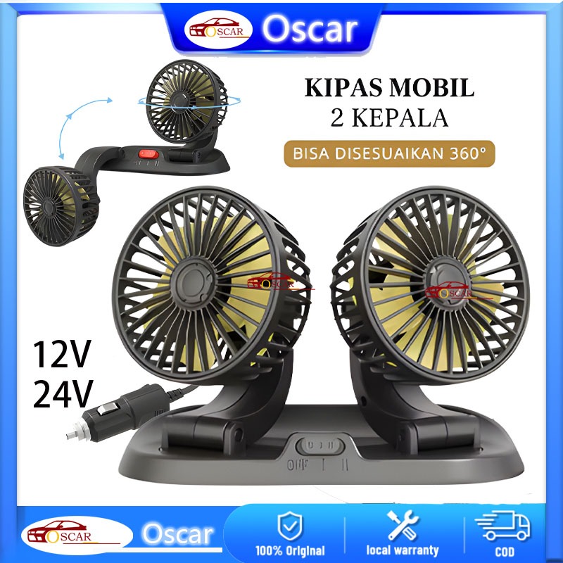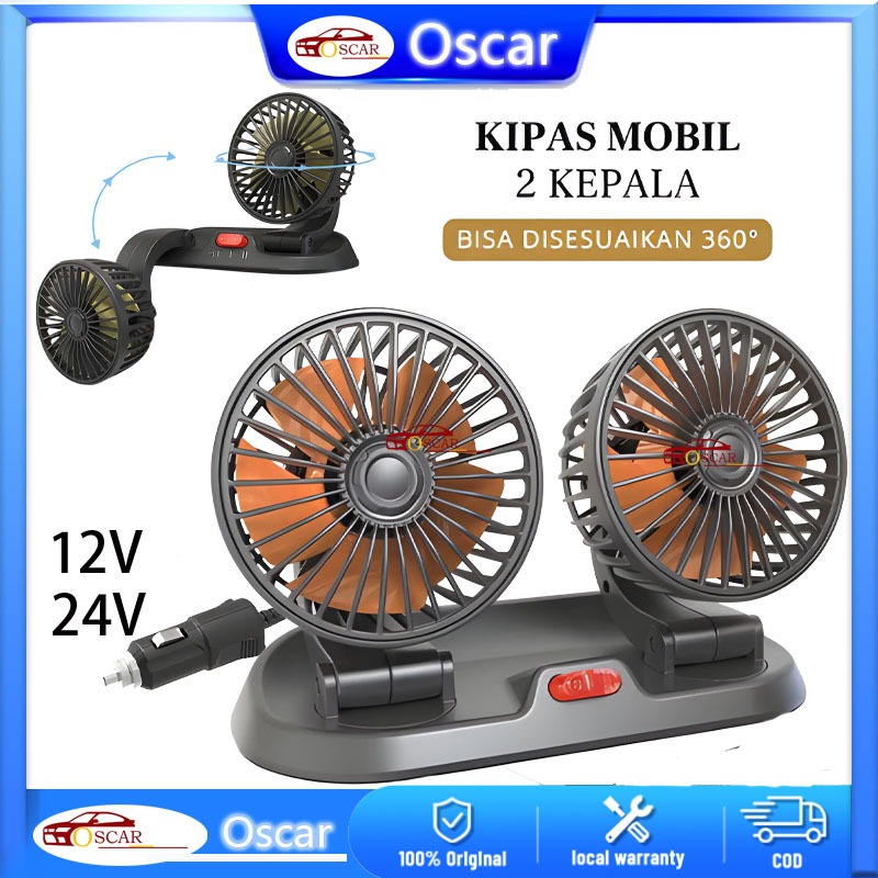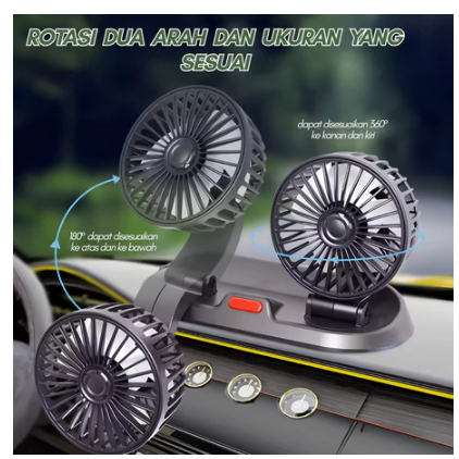 Kipas Angin Mobil Double Fan 12V/24V / Kipas Angin Mobil 12Volt / 24Volt disesuaikan 360°