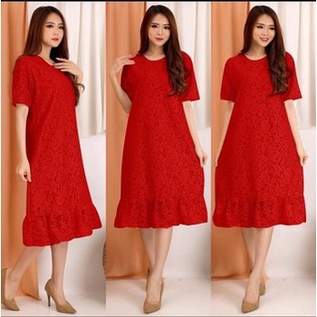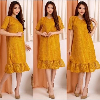 Baju Dress Sonata Pesta Lebaran Trend 2022 Gaun Dres Brukat Wanita Remaja Modern Trending Viral Trend Kekinian Terlaris Murah Terbaru Pakaian Midi Dres Bahan Brokat LD 98 Allsize Fit M+