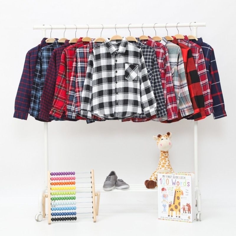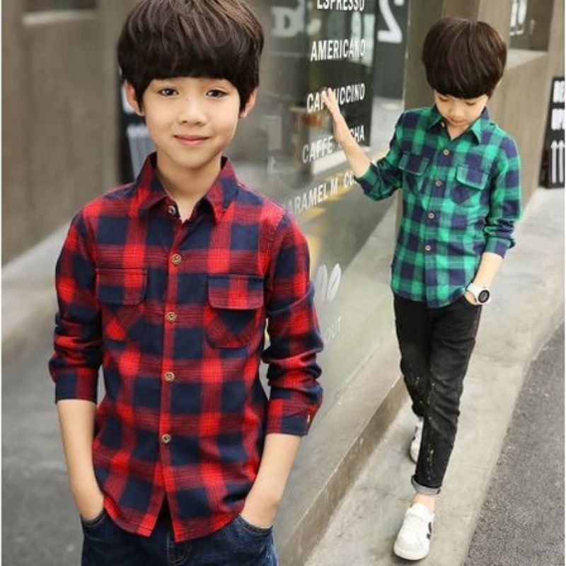 Baju kemeja kotak kotak flanel import lengan panjang anak tanggung laki laki usia 2-12 tahun