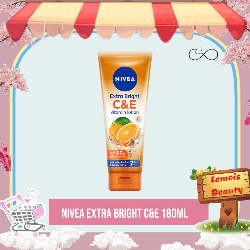 LemoisBeauty- NIVEA Body Lotion Extra Bright C&E Vitamin Lotion UV Filter 180ml - Hand body serum lotion moisturizer mencerahkan kulit kusam badan glowing brightening tone up melembabkan kering - 50x Vitamin C & E, UVA UVB Filter