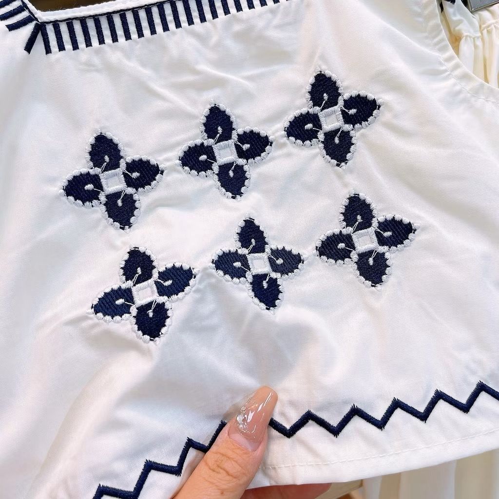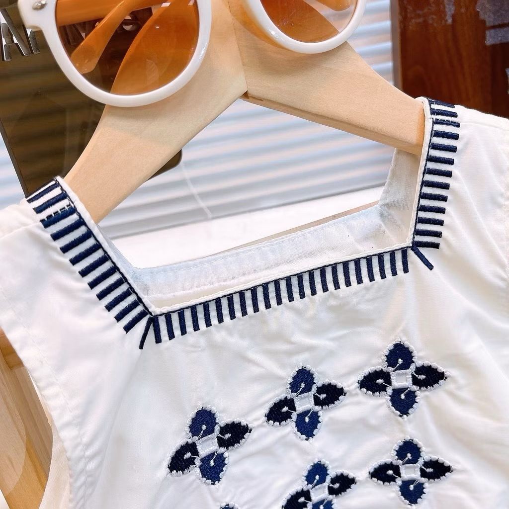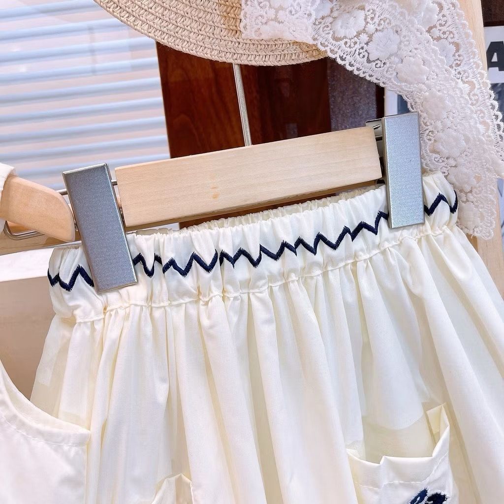 [FLASH SALE] MEI TI - Bloom Set -Setelan Rok Anak Import Perempuan Tanpa Lengan Crop Top Motif Wavy Leaf Bordir