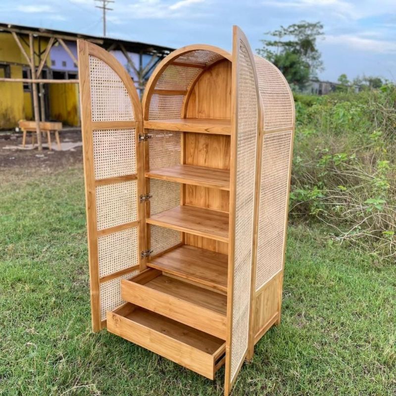 Lemari rotan kombinasi rotan / Lemari penyimpanan minimalis