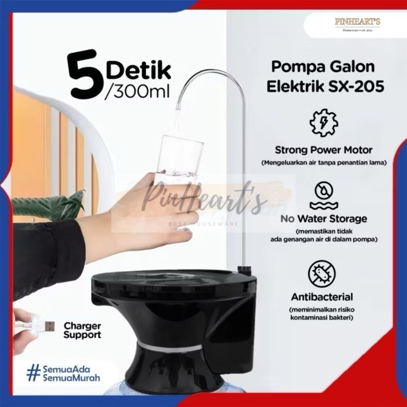 POMPA AIR GALON TATAKAN GELAS ELEKTRIK SX-205 AUTOMATIC WATER PUMP DISPENSER RECHARGEABLE / POMPA BERDIRI