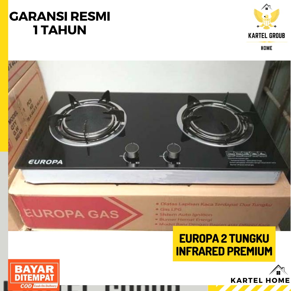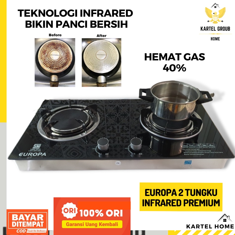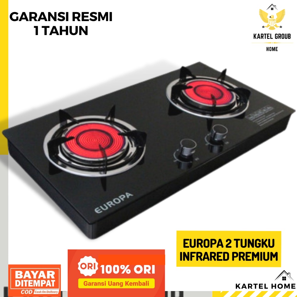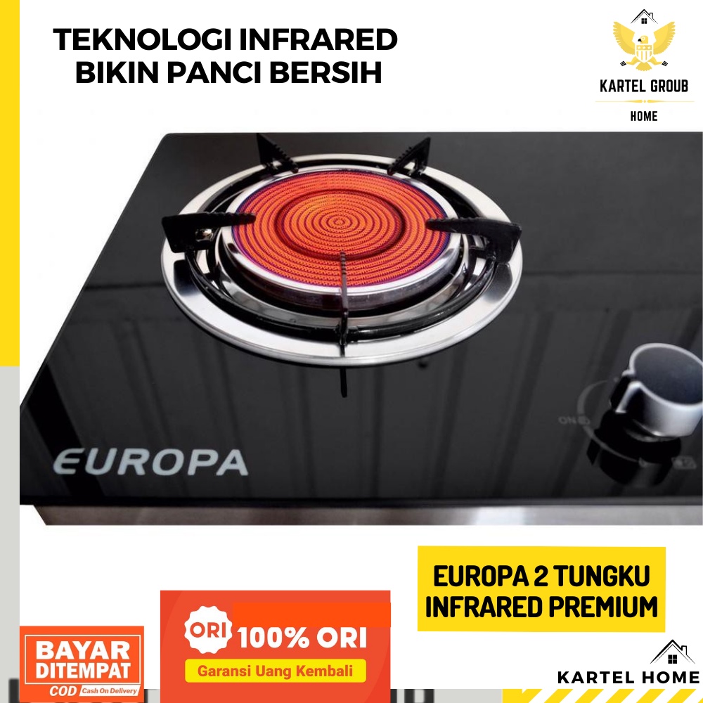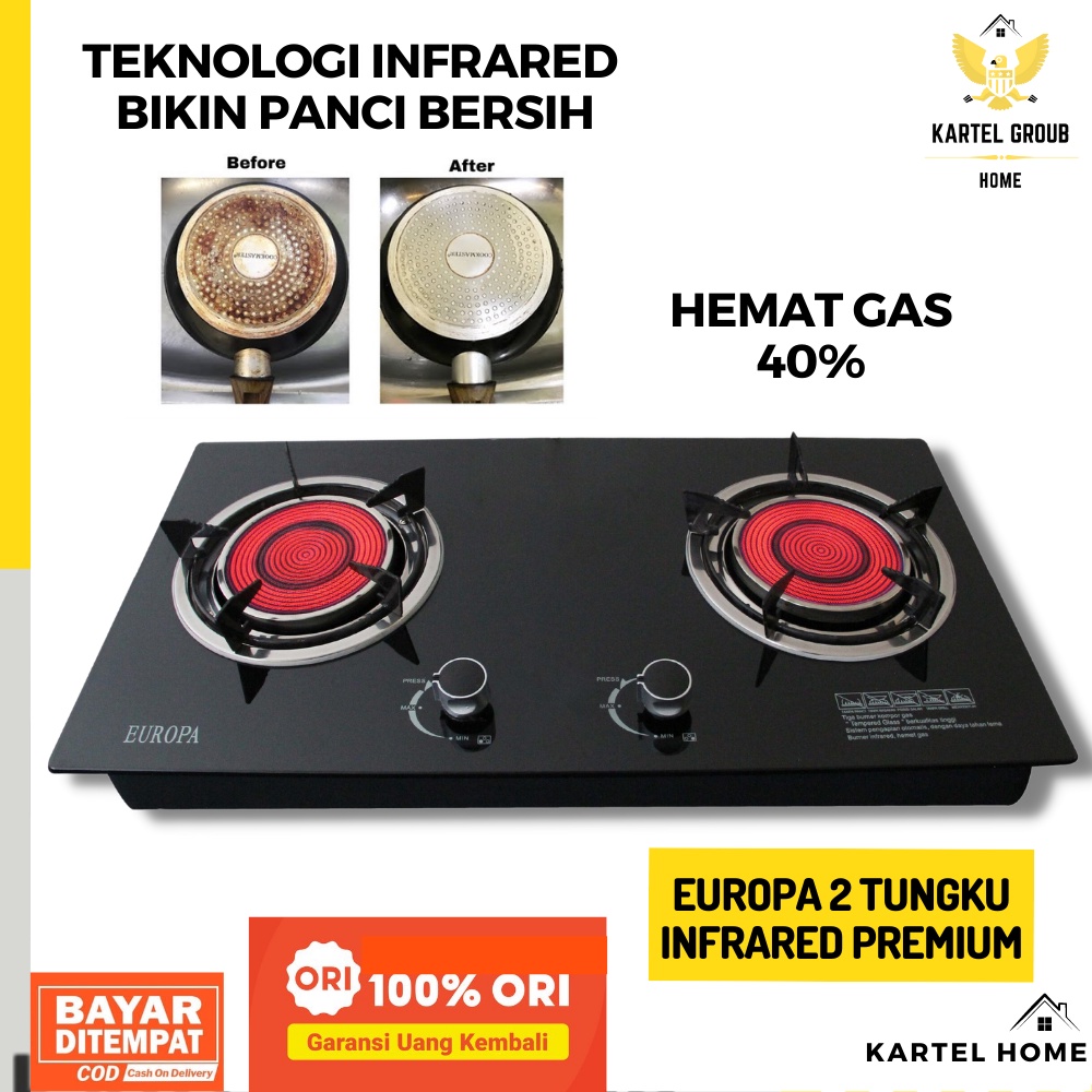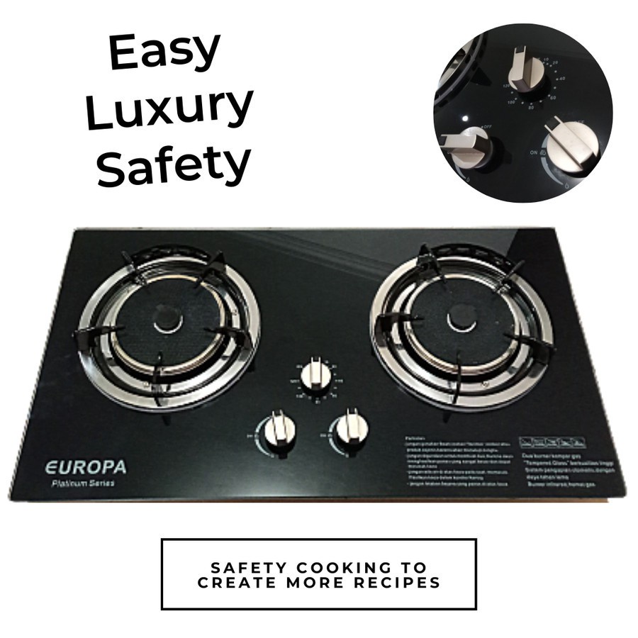 EUROPA Kompor Tanam Kaca 2 Tungku Infrared Hemat Gas LPG 40% Tempered Glass Kuat 80kg