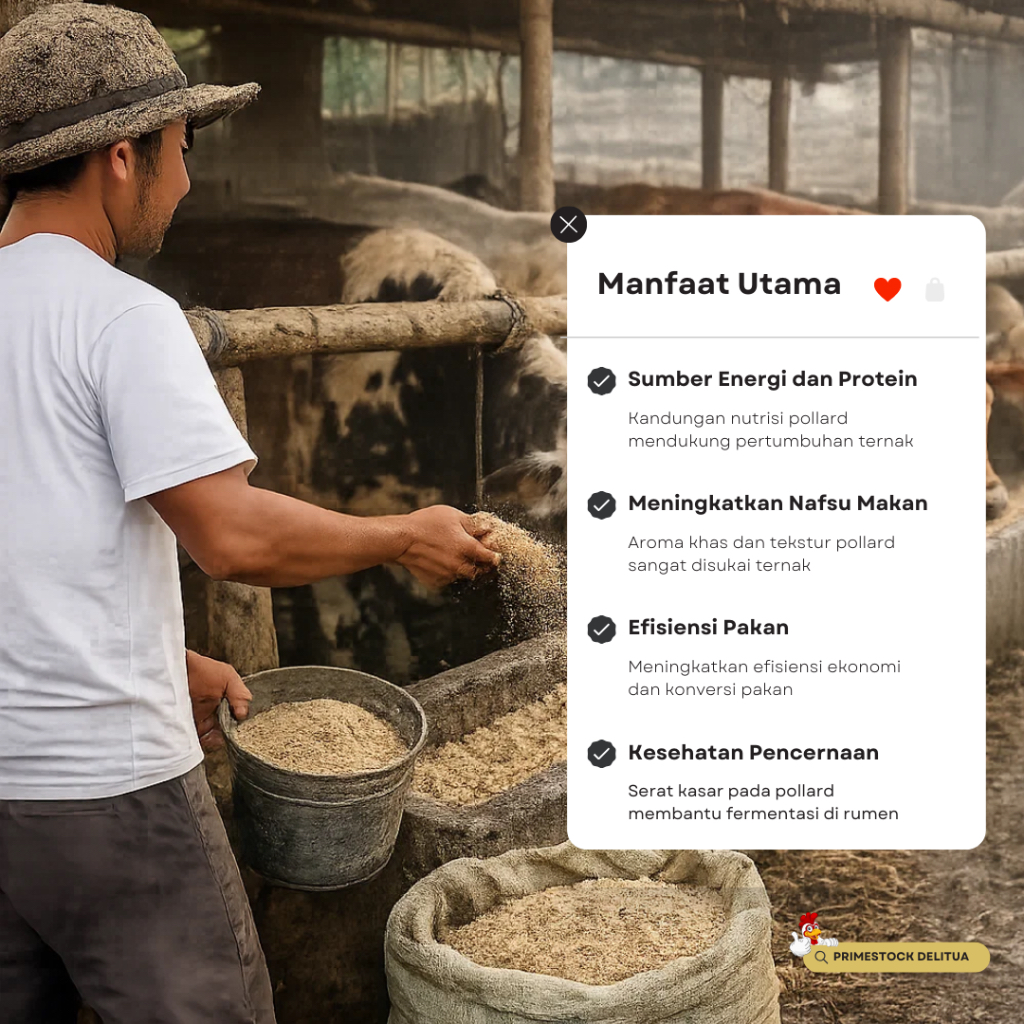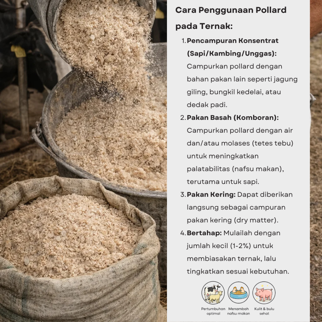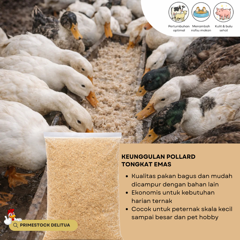 Pollard Tongkat Emas 1kg - Dedak Gandum Halus Pakan Ternak Sapi, Kambing, Itik, Ayam