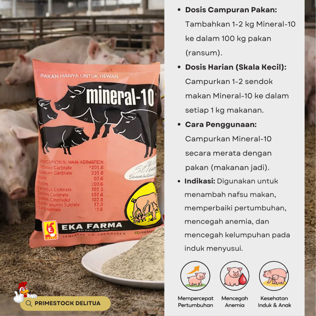 MINERAL-10 Paket Hemat Isi 5 Bungkus (5 × 1 KG) – Suplemen Vitamin & Mineral Pertumbuhan Babi