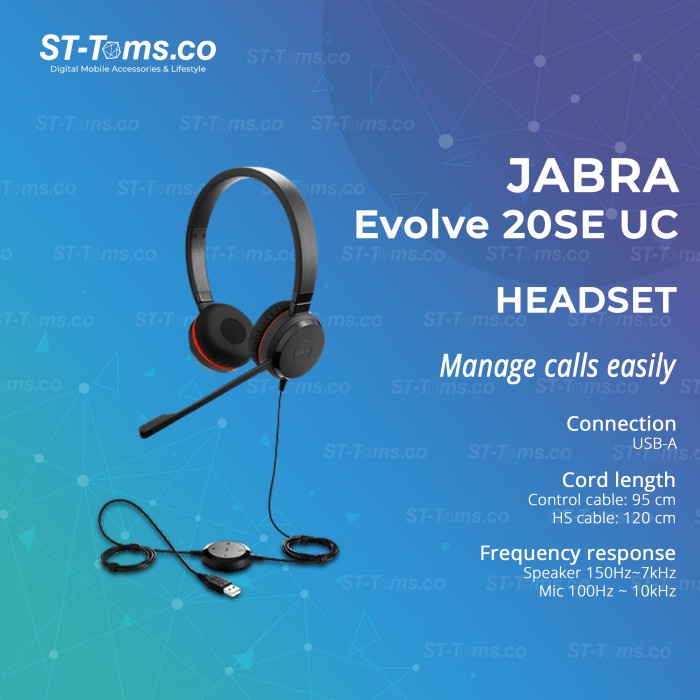 Jabra Evolve 20 SE Leather Stereo USB A Professional headset