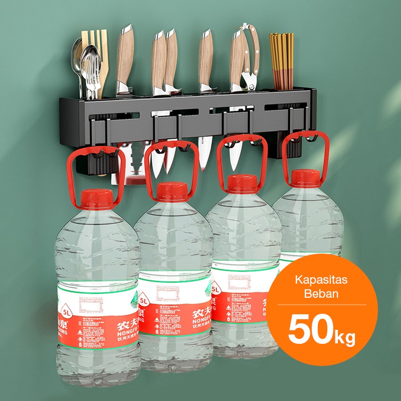 EARISE Rak pisau dinding Dapur Stainless Steel Rak Gantung Dapur Multifungsi Rak Tempel Tanpa Bor