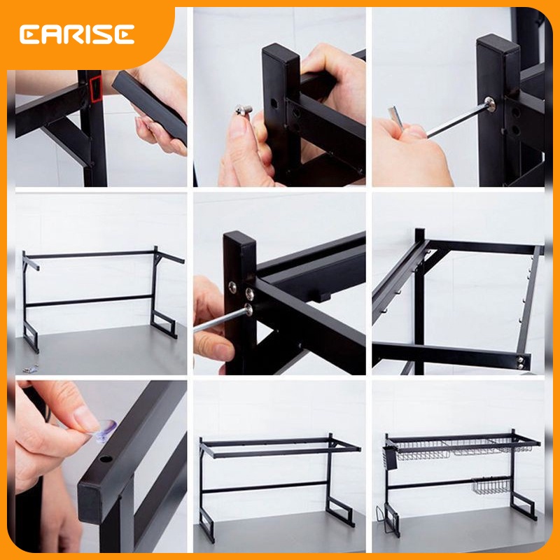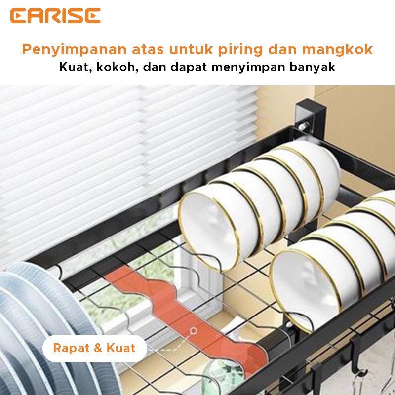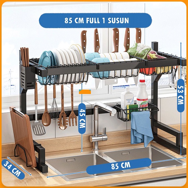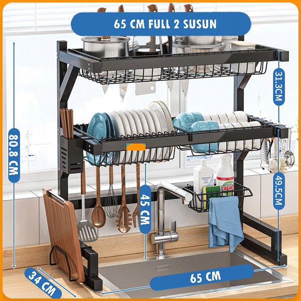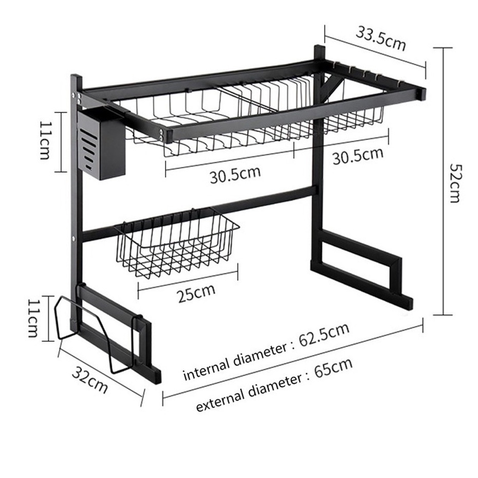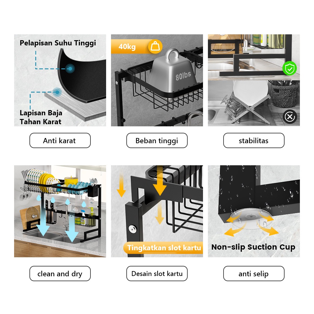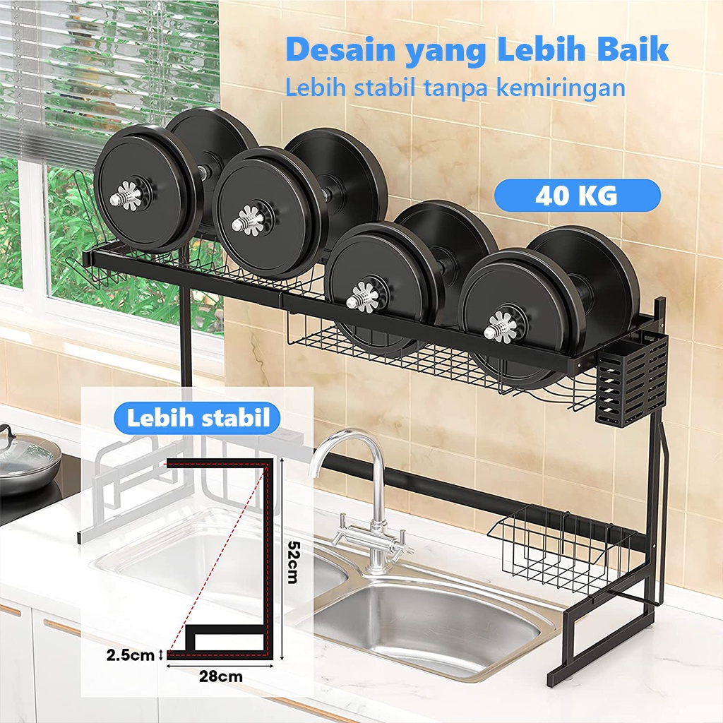 EARISE Rak dapur Hitam Rak Piring Wastafel Stainless New Ditingkatkan Kuat 2 susun